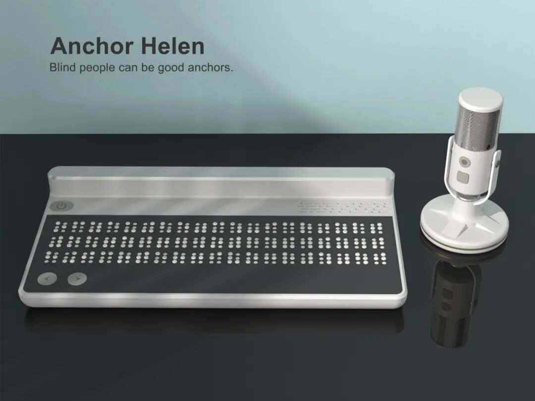 Anchor Helen旨在帮助盲胞录制广播节目或播客,它包括盲文提词机和录音麦克风。盲文提示器可以蓝牙连接手机和计算机,并将文档转换为盲文,在广播过程中提供语音提示。录音麦克风不仅可以优化声音效果,还配备了盲人习惯的按钮,使用户可以轻松管理录音文件。Anchor Helen帮助盲人卖声谋生,关注社会弱势群体,并促进社会公平。