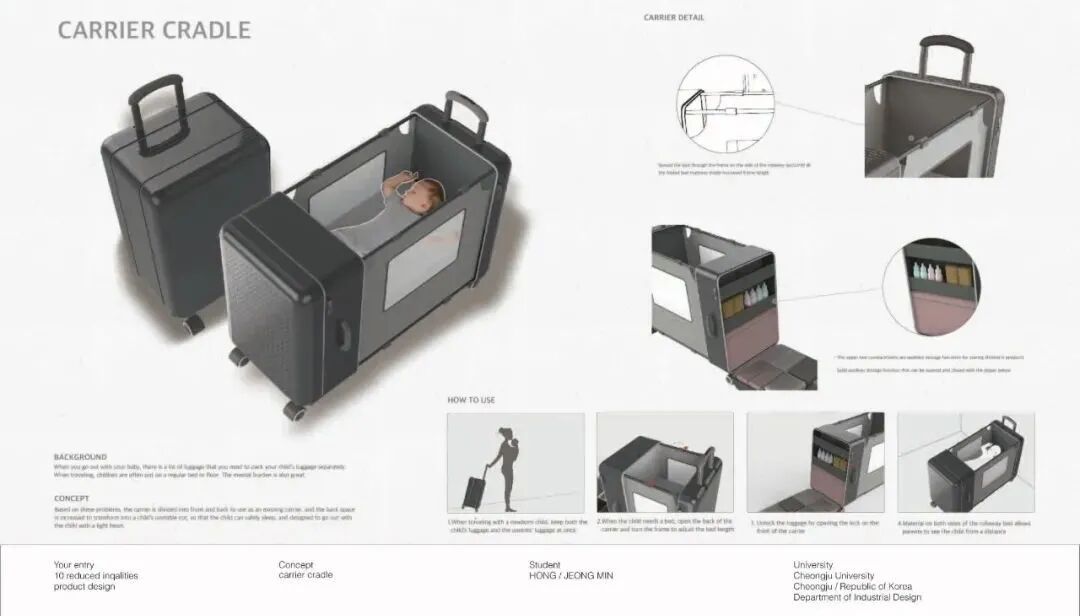 评委点评:此设计为结合婴儿车和自行车的多功能产品,为居住在城市的妈妈们打开创新的锻炼机会,但此设计的人体工学需要进一步发展。该设计解决了第三个联合国可持续发展目标。