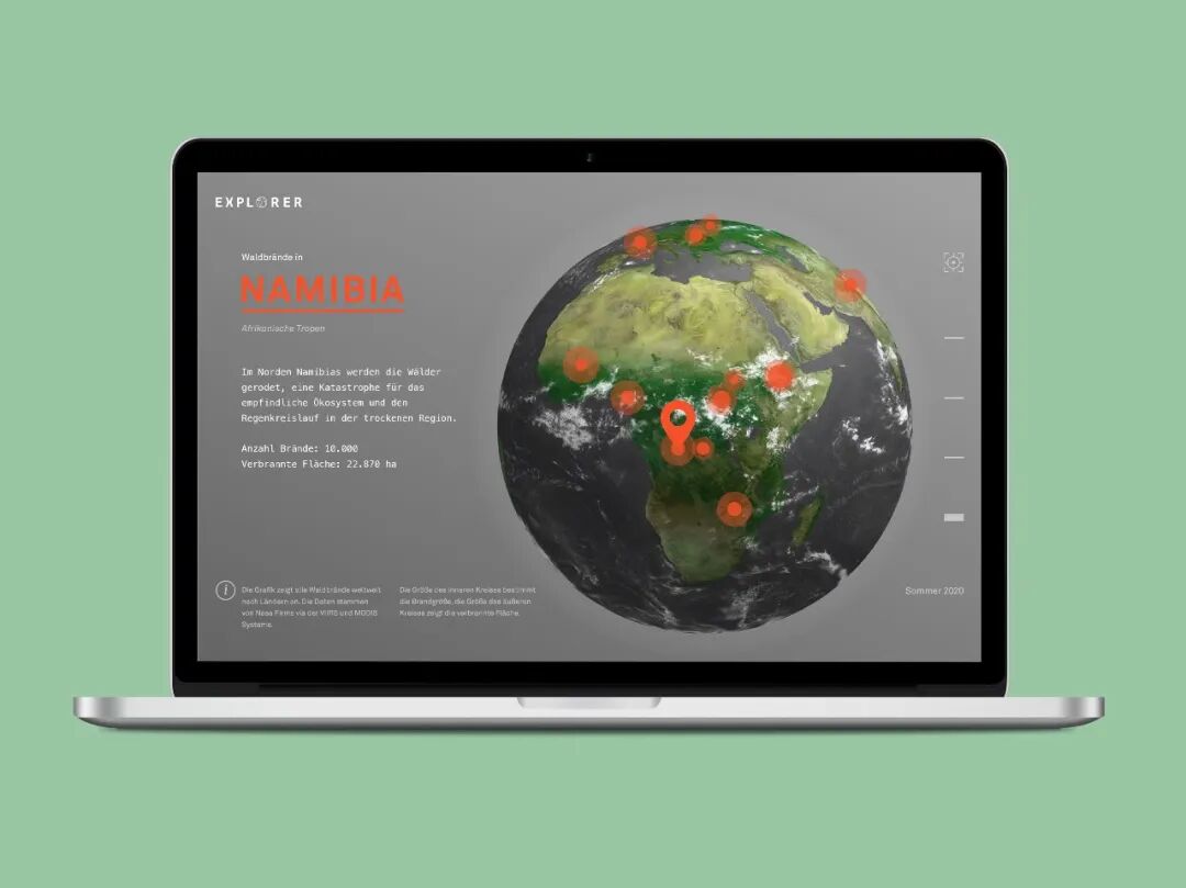 Explorer项目是跨媒体新闻报道的设计概念,让人得以对反复发生、当前和相关的主题以互动方式处理,并通过数字叙事传达。该项目以森林大火为主题,但是该概念可以应用于各种主题。这是一个用于笔记本电脑和智能手机的交互式网站。