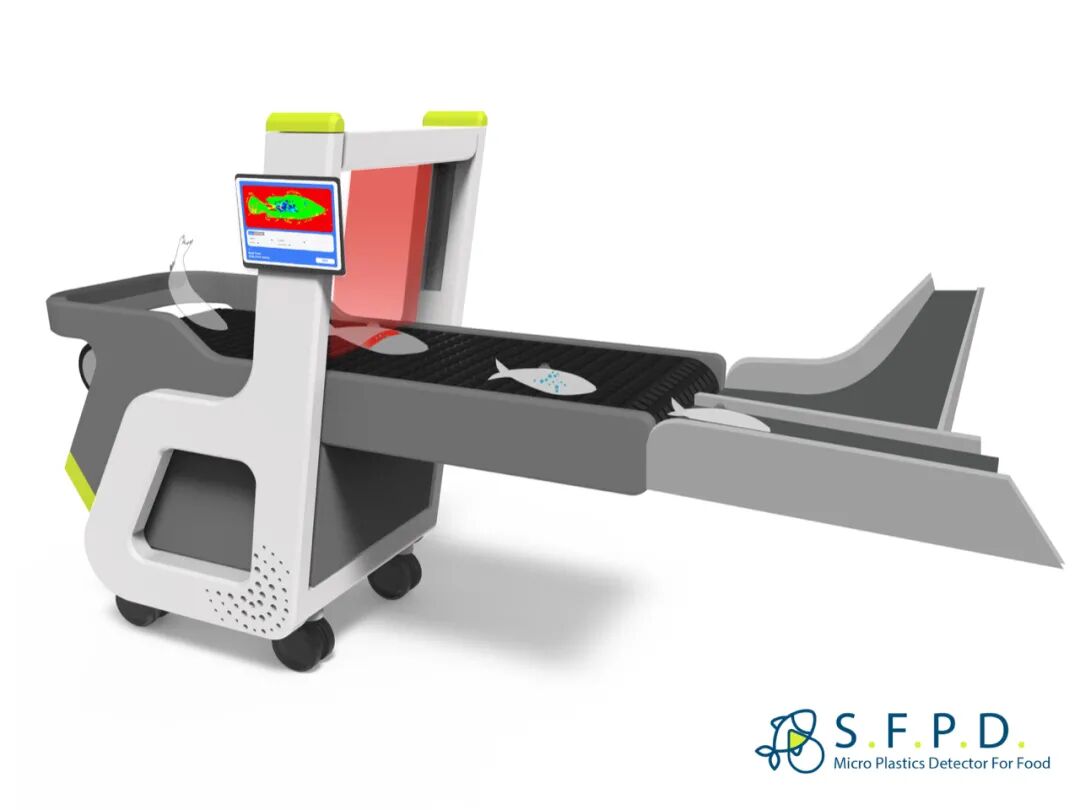 S.F.P.D. 利用太赫兹(THz)电磁波技术检测鱼类中的残留塑料颗粒。在分类之前,先进行塑料材料检测,分离含有塑料颗粒的鱼,并将鱼切片,以去除塑料颗粒。此外,S.F.P.D的模块化机器设计可以在传统的鱼类批发市场中独立应用太赫兹(THz)电磁波检测器,以防止人们食用塑料。