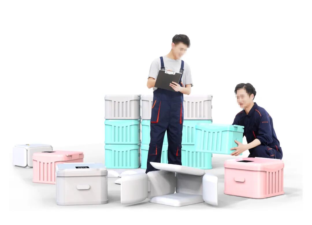 该产品解决了产品运输和包装运输中的环境污染和资源浪费问题。它建议使用共享的送货箱来减少碳排放,并使资源使用更具可持续性。该产品可以重复使用或回收,以最大幅度提高产品的可持续使用价值。