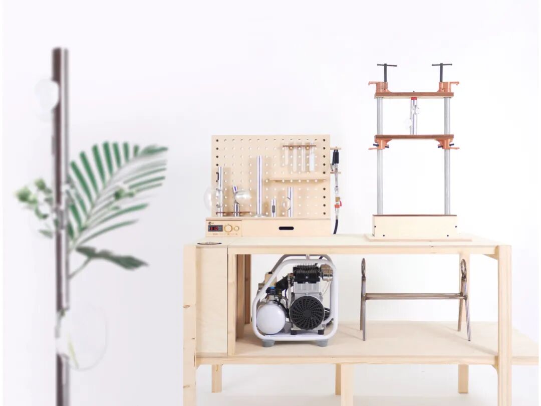 Bubble Lab是一系列工作站,旨在将工业材料和制作流程应用在手工艺品。吹塑成型是用于制造中空玻璃和塑料部件的制造工艺,由于该过程所需的热量和压力不菲,通常只能在工业规模下使用。这款精简的工作站使工艺人员可以通过吹模成型工艺来制作精美的手工艺品,为手工艺和艺术开辟全新的世界。