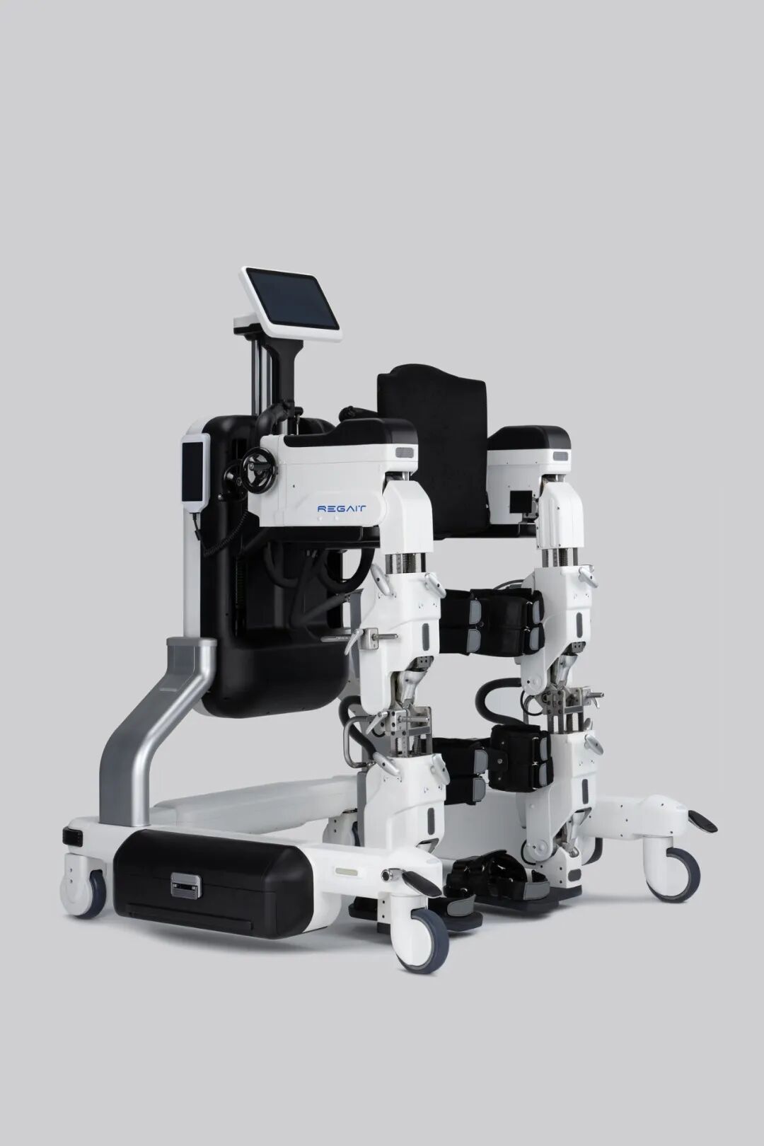 REGAIT康复机器人为患有脊髓损伤、中风、肌肉无力等下肢运动功能障碍引起的神经系统疾病的用户提供康复、训练和评估解决方案。REGAIT 提供主动和被动的步态训练模式。最先进的评估系统以及用户动态数据的反馈有助于物理治疗师制定量身定制的康复计划。通过个性化的身份证,用户可以从随机的 REGAIT 登录并继续康复计划。REGAIT旨在建立人性化的医疗保健体系和创新的康复模式。