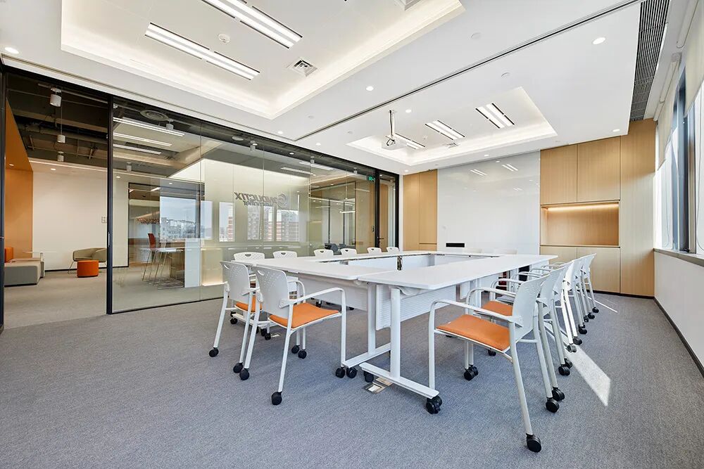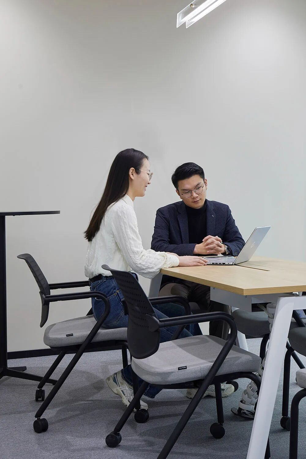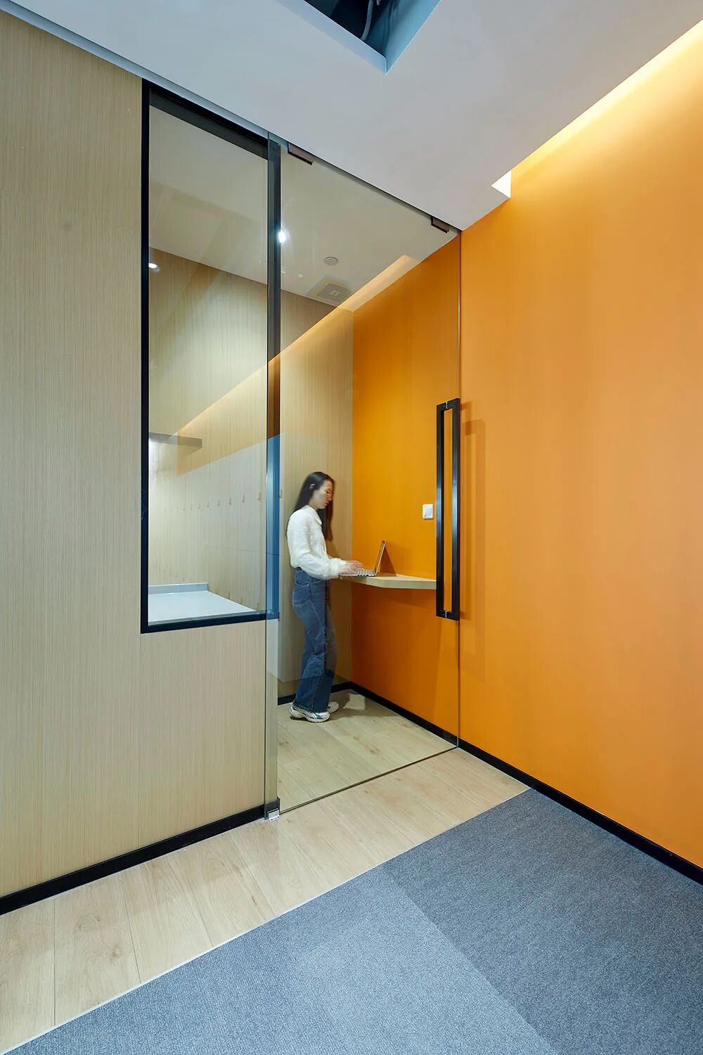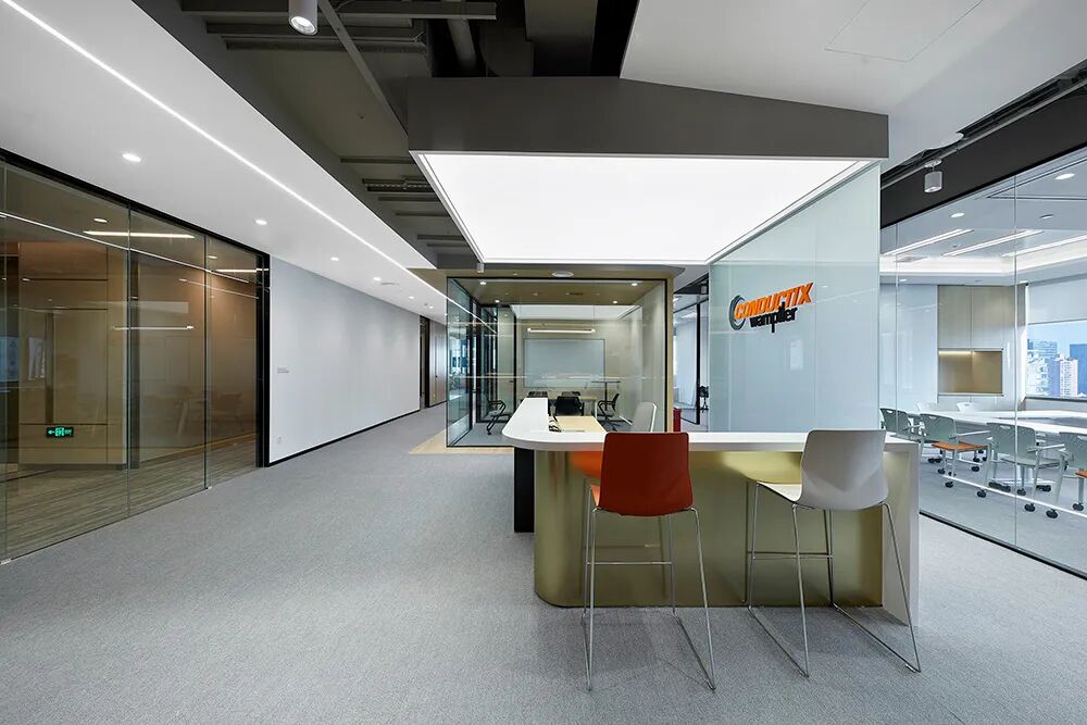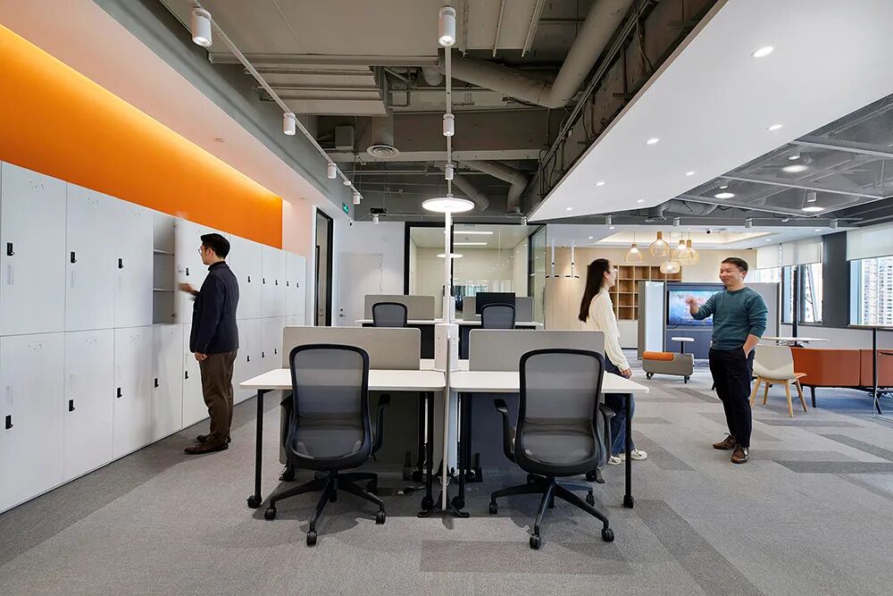 整体空间以浅色为背景,加以活力的康稳橙和沉稳的不同色度的灰色、木色,这组愉悦的色彩搭配在白色的调和下塑造出一个开放协作、灵动多元的办公环境。人性化和灵动而自由的模块化办公家具组合既满足个人专注工作、也能随时展开团队协作。可调节的工作台、人体工学办公椅、柔软的沙发和桌子,丰富了动态坐姿和自由选择,也让工作变得积极而有趣。