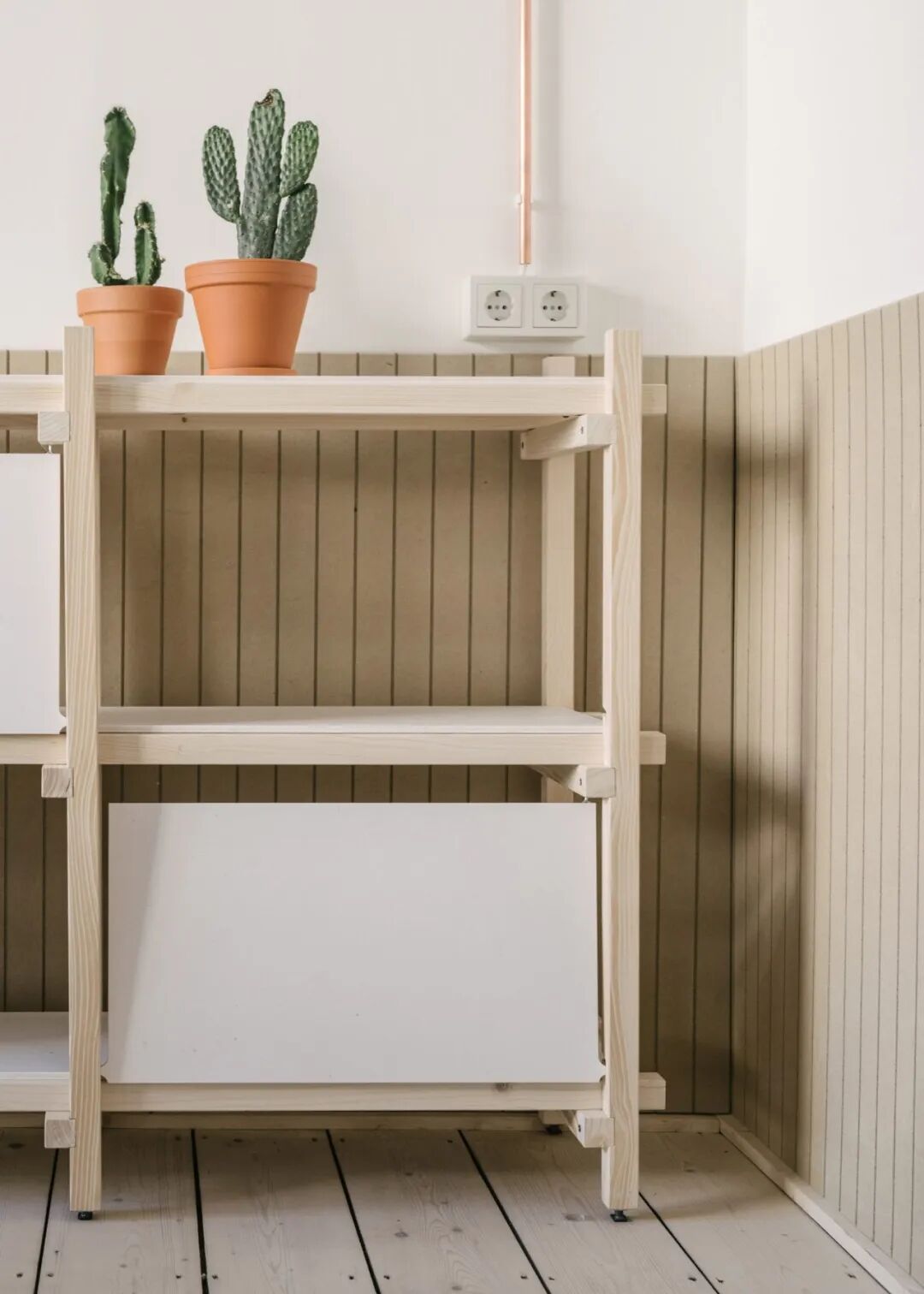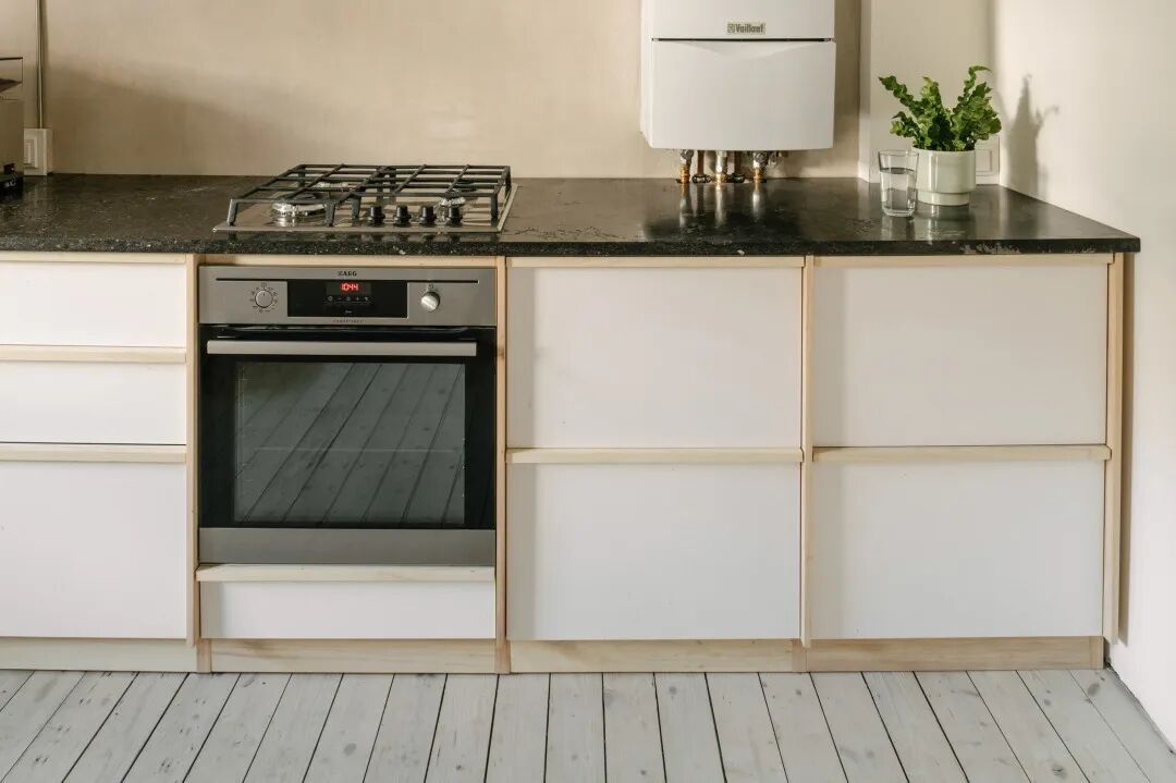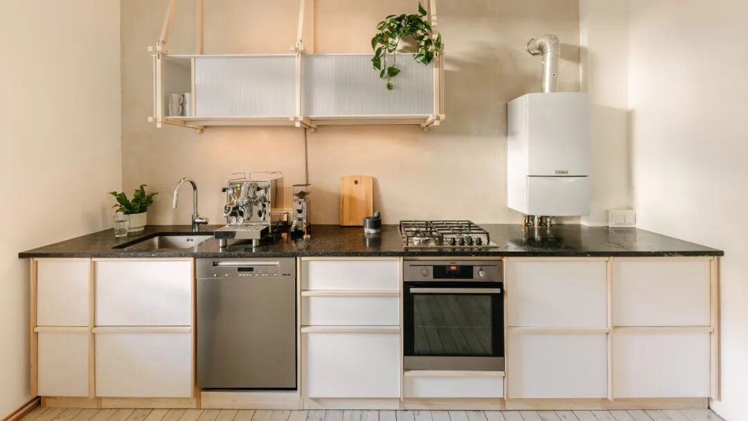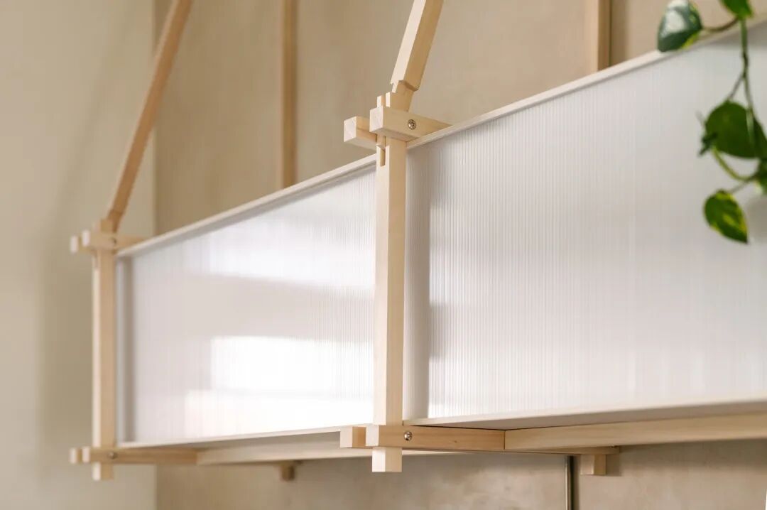 室内的实心木框橱柜也是无胶水组装,因此结构是完全可拆卸的;橱柜面板采用回收织物条制成;墙壁的覆面材料则由造纸污泥和纸板废料制成。除了这些实践,工作室还为这些创新的实验材料制作了“材料护照”,他们期待创造一种新的设计语言,以供未来项目参考。