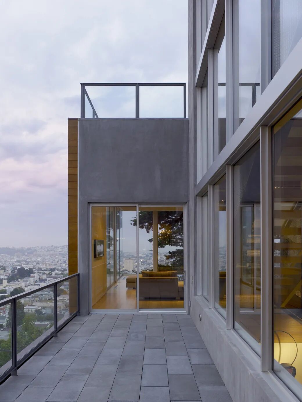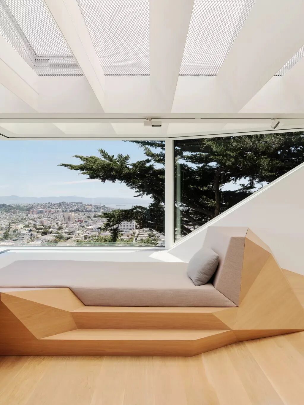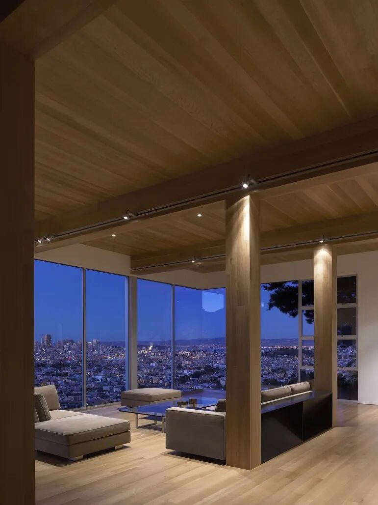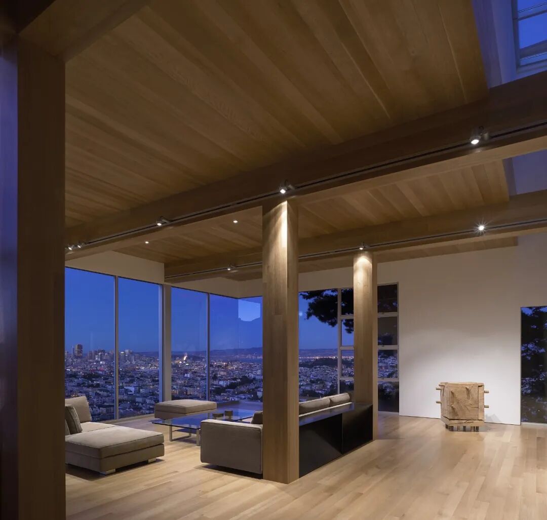 我们想创造‘漂浮’在家和旧金山市中心上方的效果。为实现这一目标,我们决定让墙壁和天花板消失。