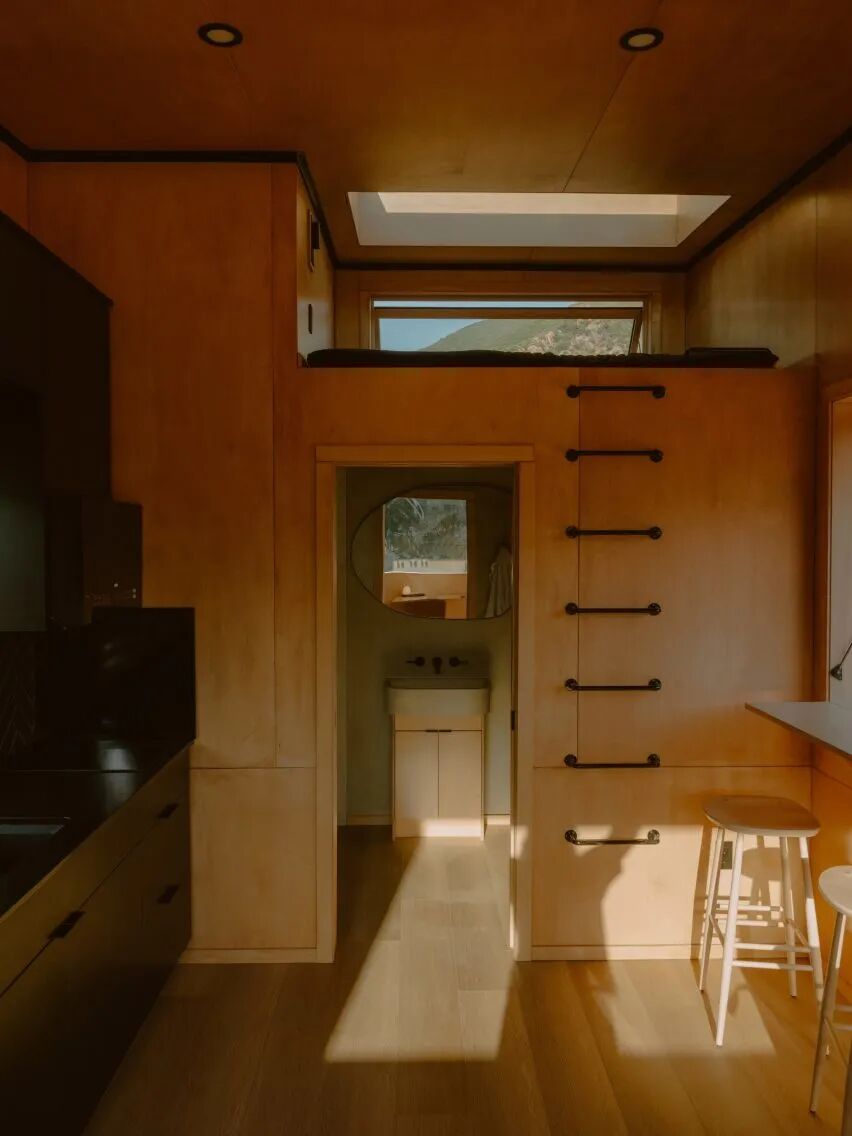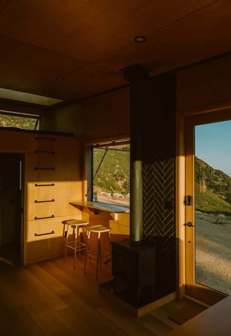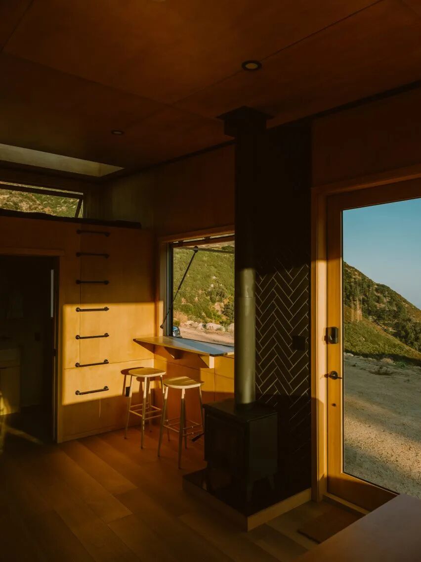 Find Sanctuary 将推出卧舱和“作为协作思考空间”的办公舱。第一个试点木屋开设在洛杉矶东北部的 Big Bear 风景区,室内设计与旧金山的 Narrative Design Studio 合作。木屋拥有绝佳的景观视野,中央部分设有厨房、酒吧式用餐区和一张木桌,并完整配备了水电系统和互联网。