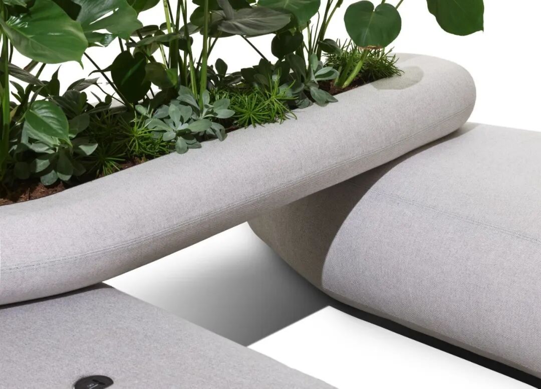 沙发由具有高度功能性的 360 度运动自由度的概念旋转模块组成,并由温暖的木质和泡沫框架以及钢连接巧妙地制成——用户只需在巧妙定位的枢轴点上添加“石头”,即可轻松操纵这款简约产品的组装。水平的连接模块进一步增加了舒适度,甚至可以用作种植园,为这个非凡的组件增添宁静的亲生物美感。“这款沙发特别适合公共等候区,包括机场、医院、酒店,甚至办公楼中灵活的会议和工作场所”,Mulder补充道。