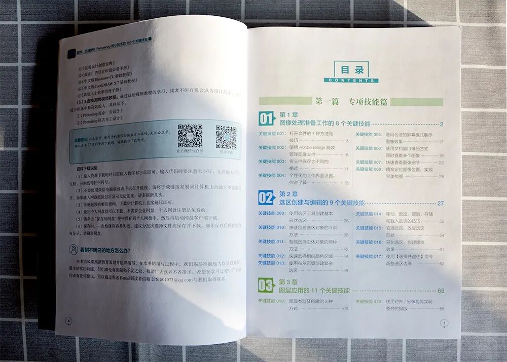 所有案例素材+结果文件,103个同步配套视频教程及技能电子书、34个商业广告设计视频、105个网店美工设计视频(扫描图书封底二维码即可下载使用)