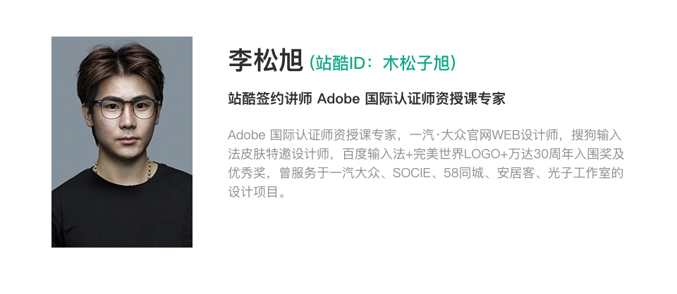 AI课程讲师李松旭(站酷ID:木松子旭)是站酷签约讲师,Adobe国际认证师资授课专家。