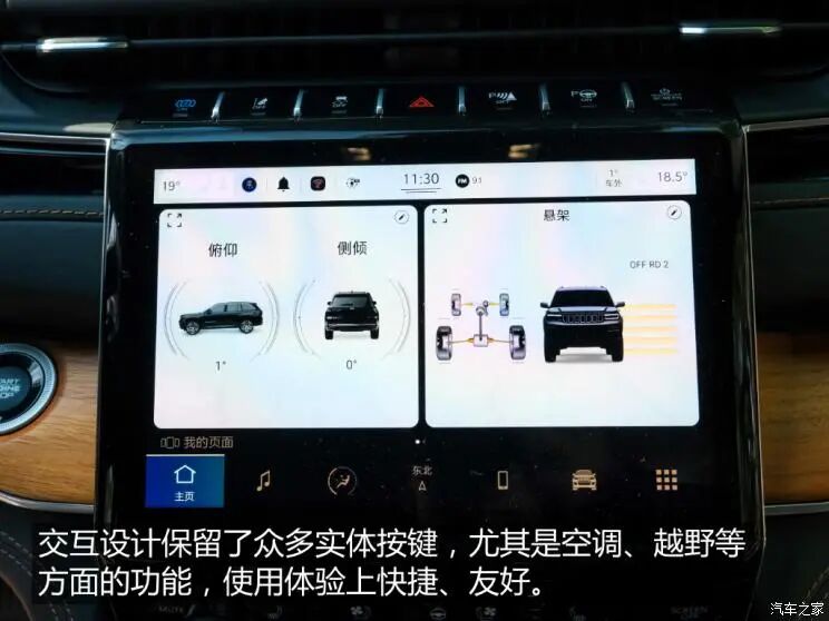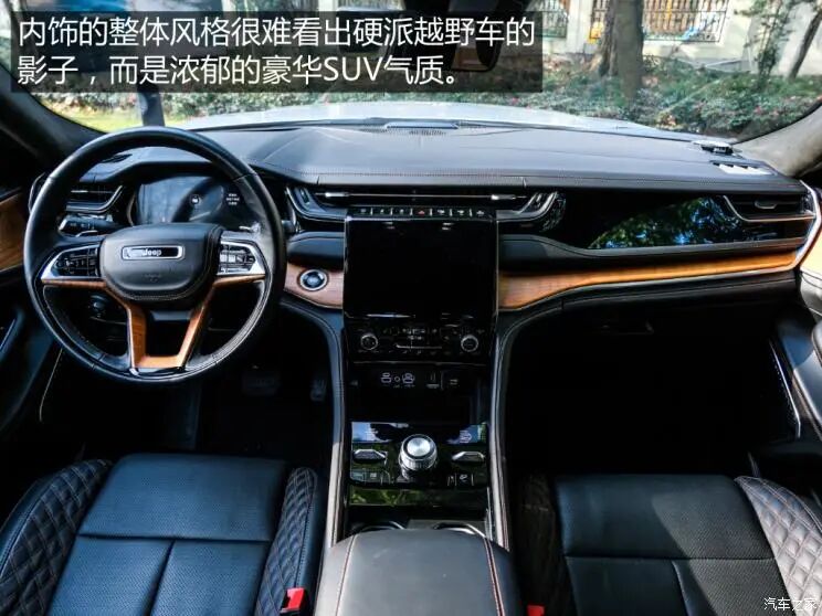接下来进入内饰部分。豪华车的“豪华”,有相当大的部分来自内饰氛围和体验的设计。Jeep作为美国SUV品牌,其设计风格自然偏向向奢华、张扬、热情的美式豪华风格。