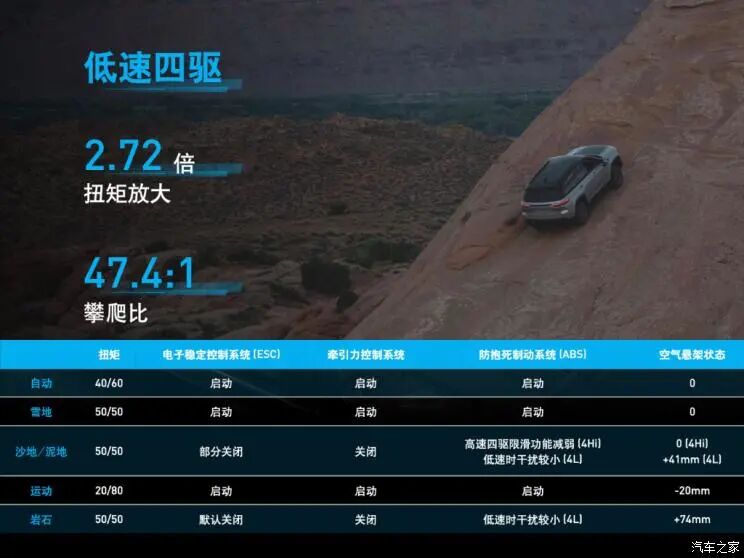 此次全新大切诺基的国内首发,现场仅提供了2.0T 4Xe版本的静态体验,根据官方信息将提供3个不同的配置款型。这里我先介绍一下这款车的驾驶与越野相关部分的硬件信息,实际的驾驶感受和评测,请关注后续报道。