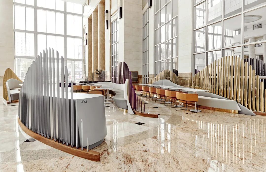 CUPONE咖啡馆,包括大堂的一部分、室外平台,以及连接两部分的室内区域,都是由SODA architects设计的。