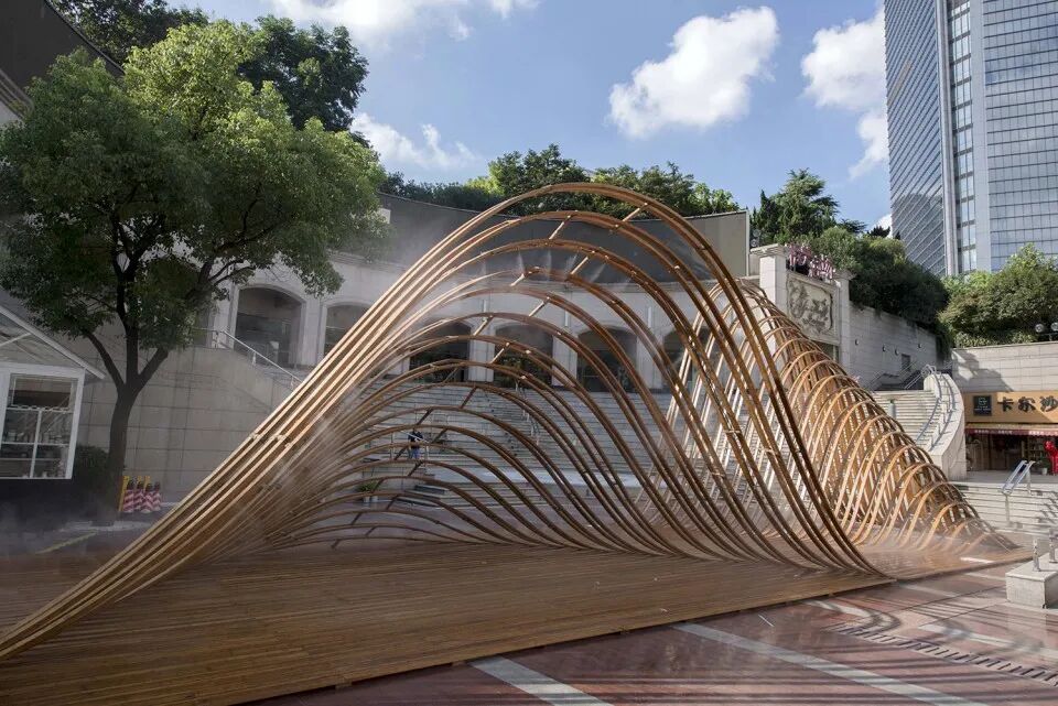 ◎ 成都丹景阁的弯弧结构充分验证了竹钢良好的抗拉与抗压性能,图片来源竹元科技