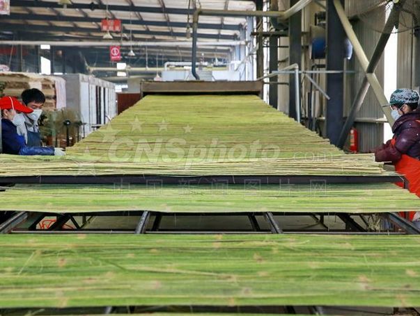 ▽经浸胶、二次干燥后的竹片 ![]()
