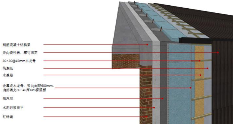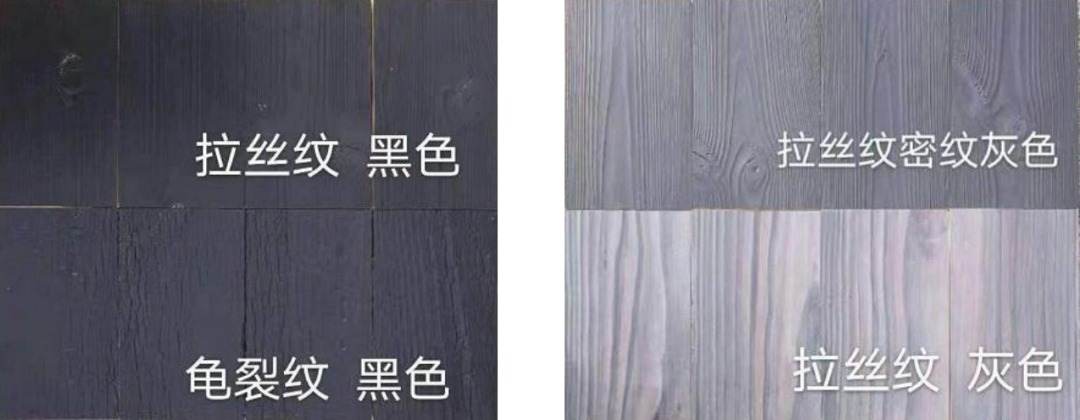 户外使用:产品表面用一种柔性硬化油成分的穿透性油,将松散的烟灰粘附在表面,并保持自然的发泡。干燥后,极小的煤烟被擦除,但表面仍然柔软,这种墙板的寿命最长,但不建议在高流量环境下使用。