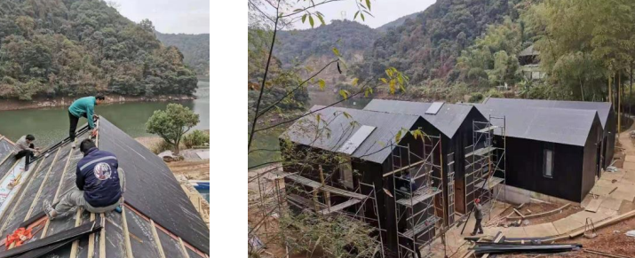 火烧板,以其沧桑古朴的质感,独特自然的肌理,沉着稳重的色泽,深受高端客户的青睐。这些特殊材料,使建筑达到做旧仿旧的效果。