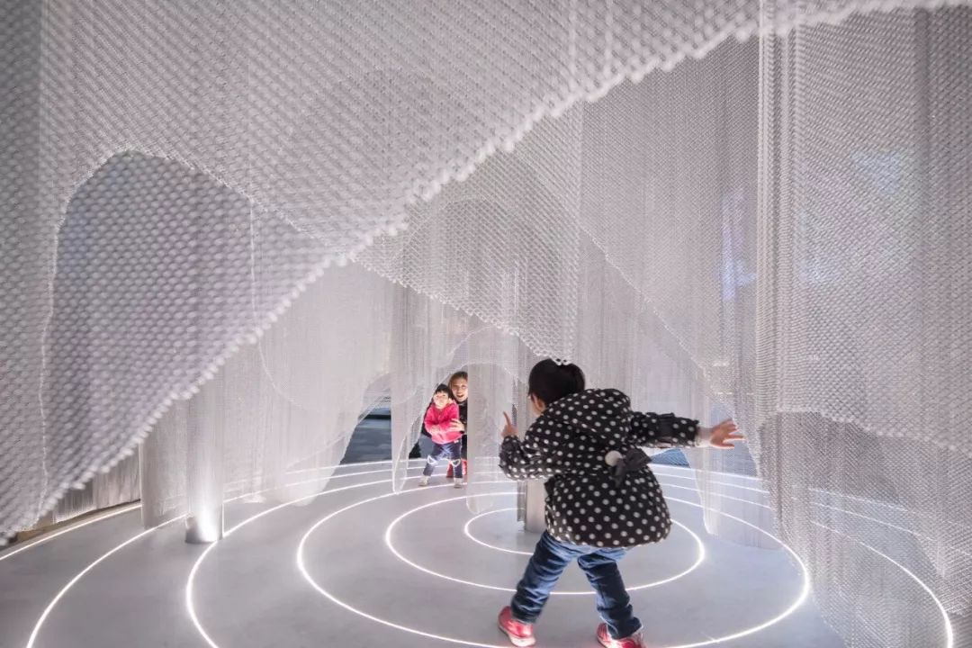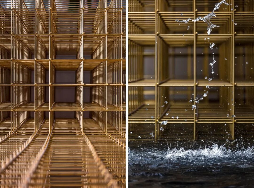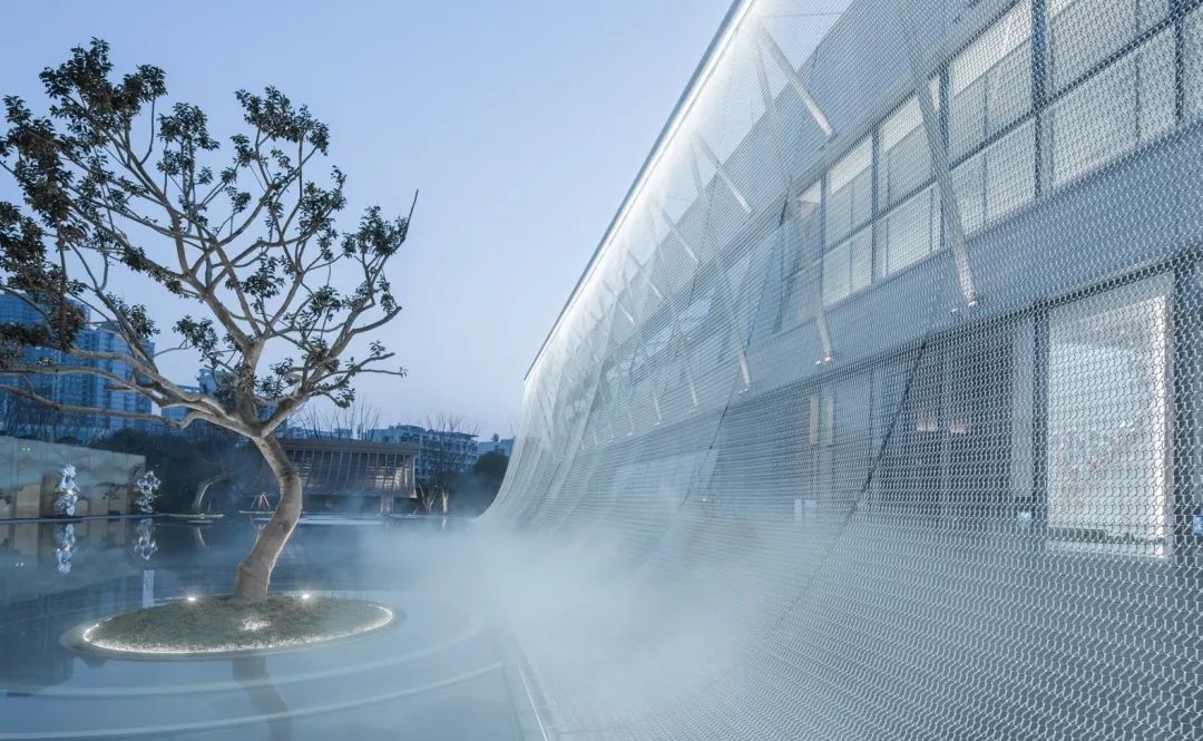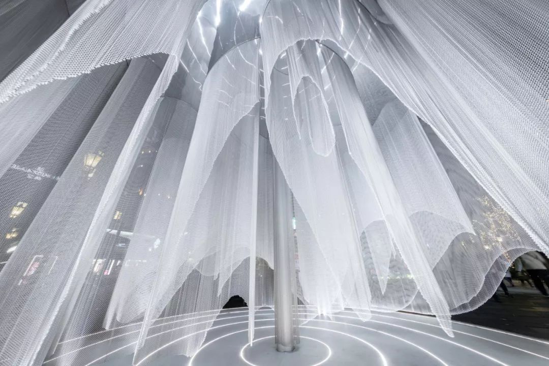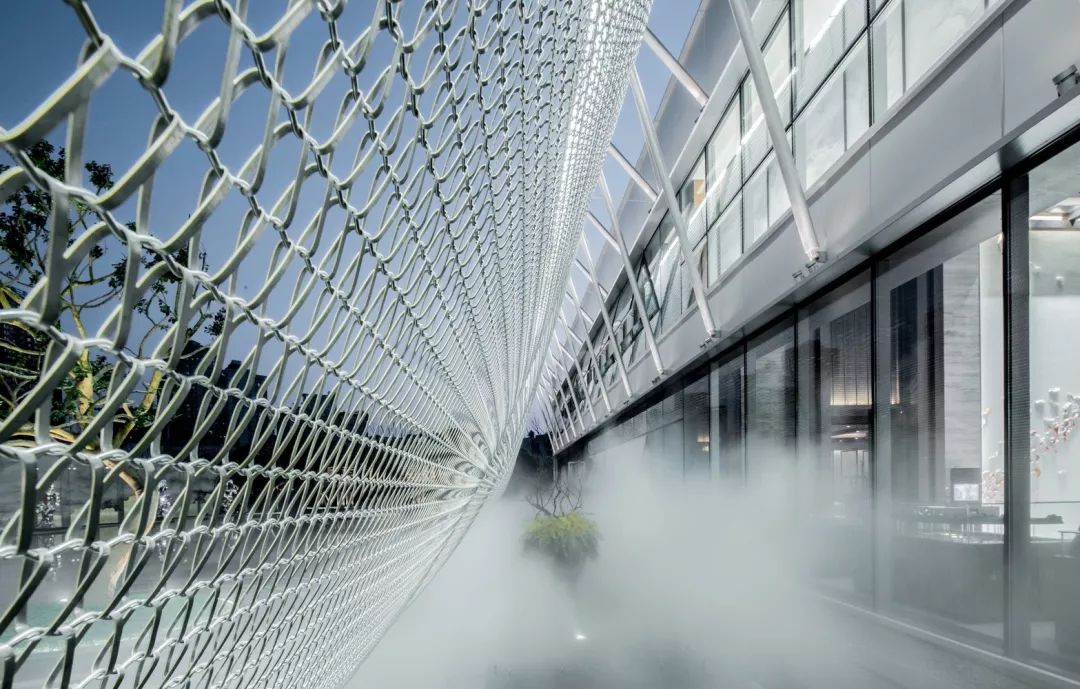 金属网状材料一般多为耐候性好的铝合金、不锈钢、铜类丝网,在建筑工程中常用于防护网、围墙、围栏等,通过设计师们的灵感创造,现阶段金属网材料被广泛运用在建筑室内景观艺术装置领域。