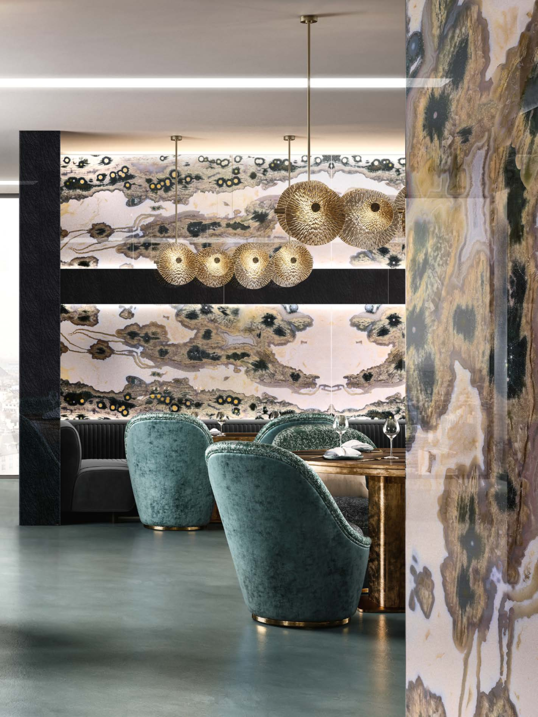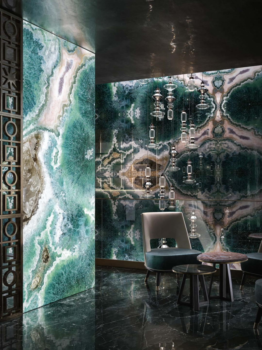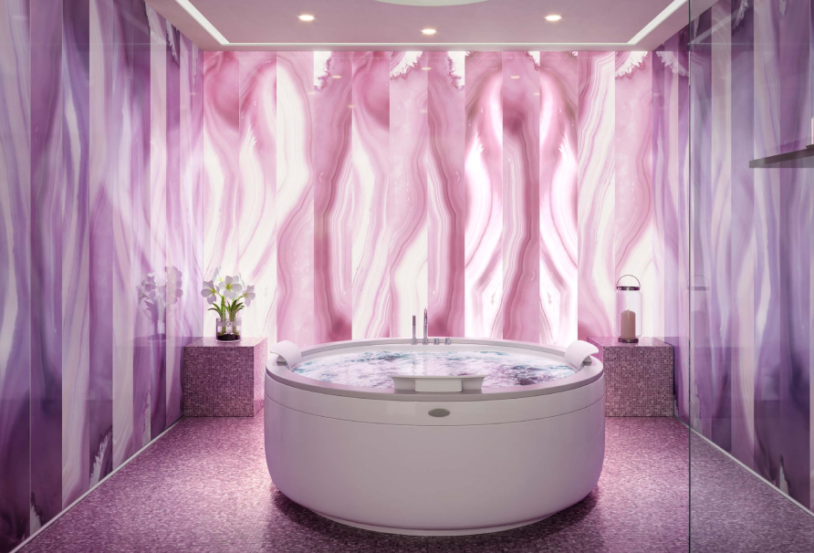 琉璃板不仅可用于室内装饰,建筑外立面和泳池,甚至是邮轮上都可以使用。其高端的设计和精美的外观让琉璃板不仅只是建筑材料,更像是一件艺术品。