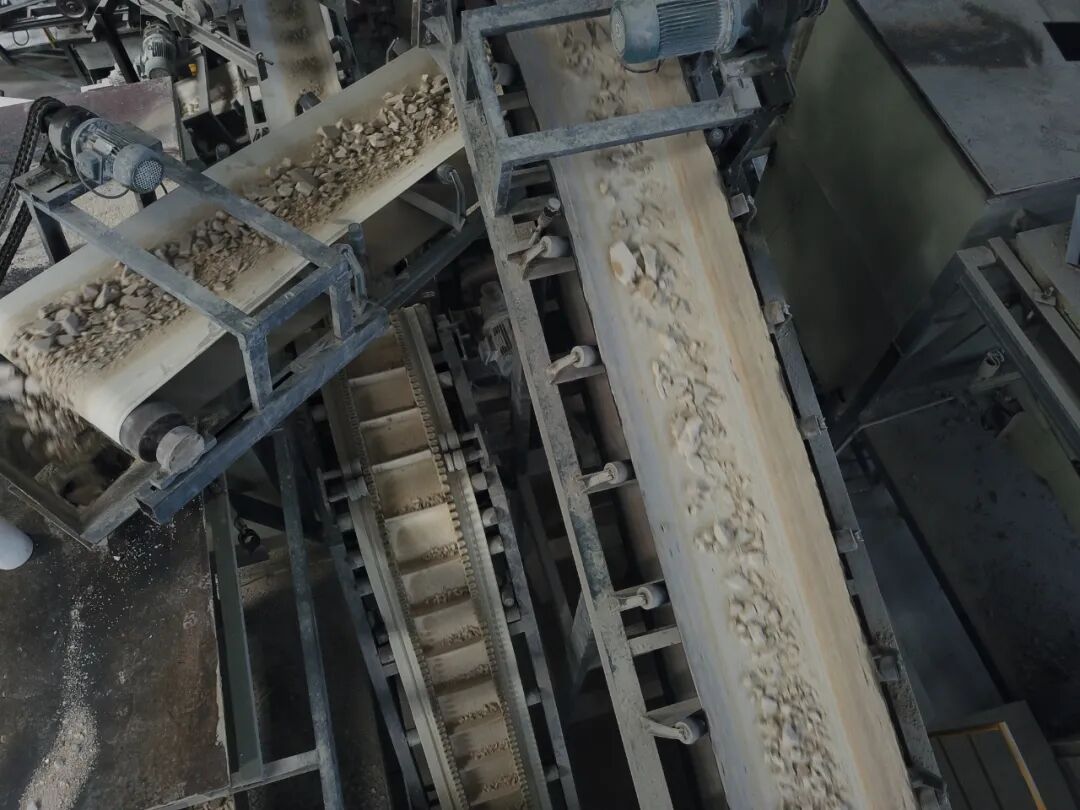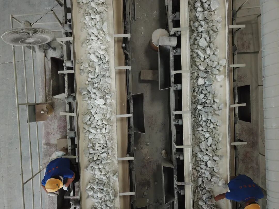 ▲筛选水磨石骨料,过程中注意选择白色骨料