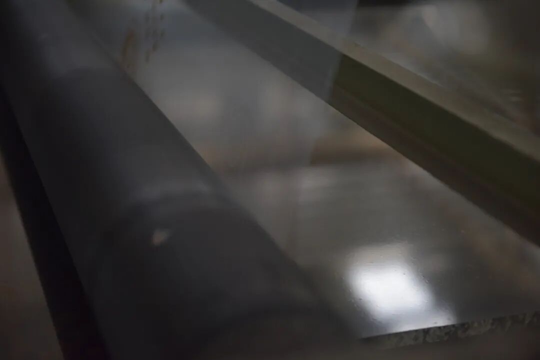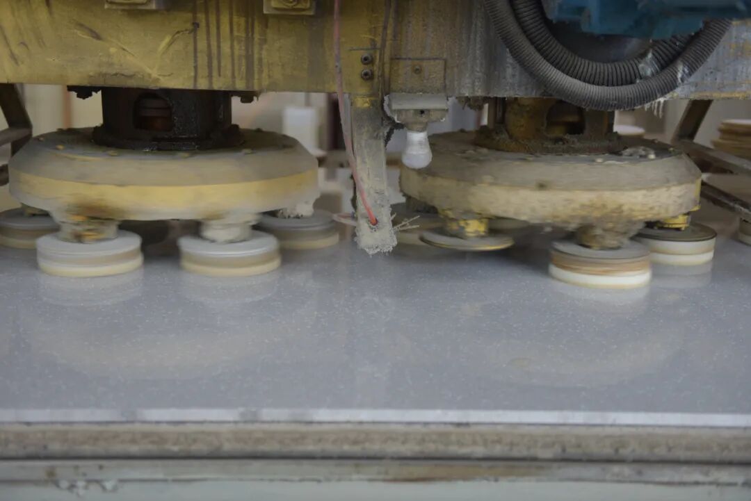 ▲方料切割成大板,并切割成5mm薄板,复合10mm玻璃
