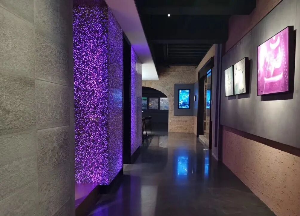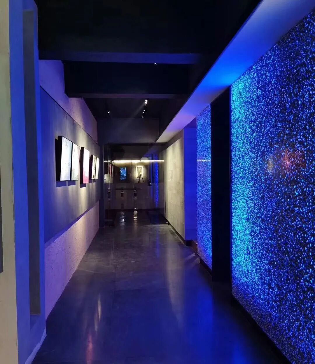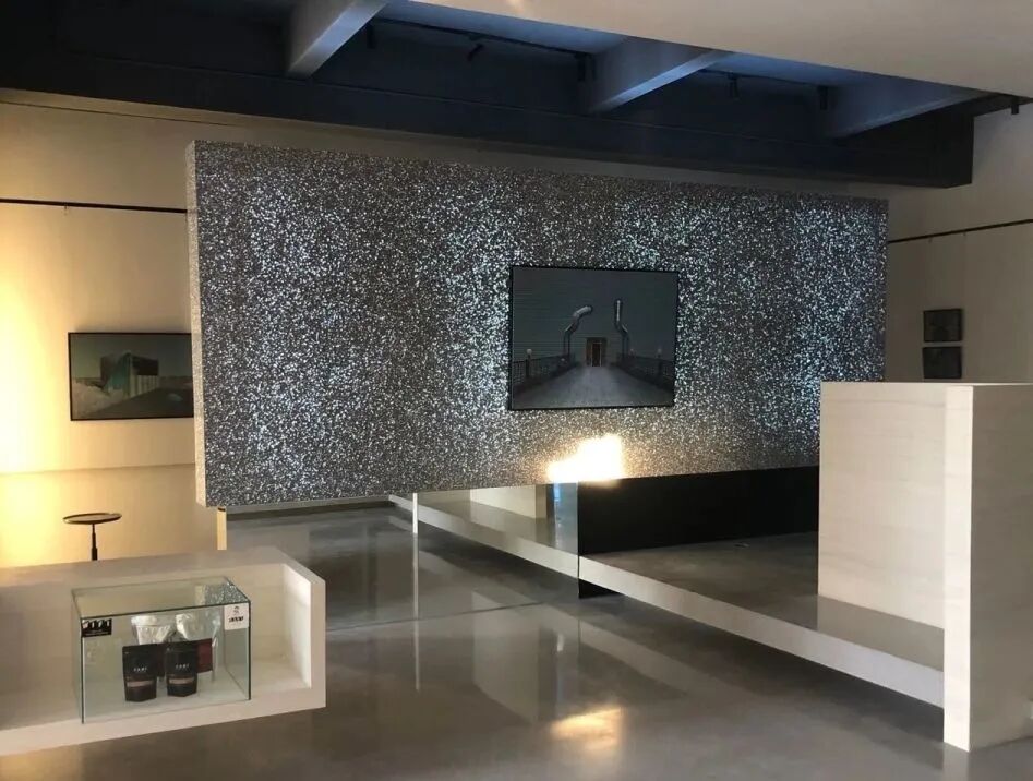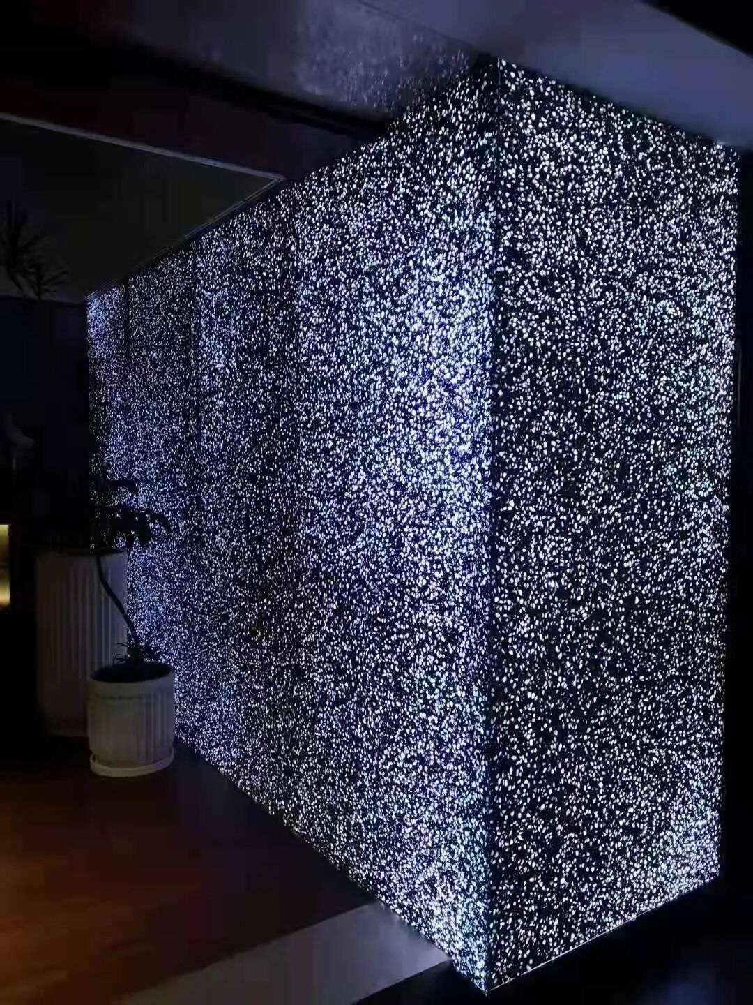 透光水磨石做为一种新型材料,它给空间营造了一种隐喻神秘又有科技未来的氛围,它又像是把宇宙的星河打造成你想要的模样看似一般的水磨石,加入了特别的透光石材后,在具备独特的纹理的同时具有透光性。