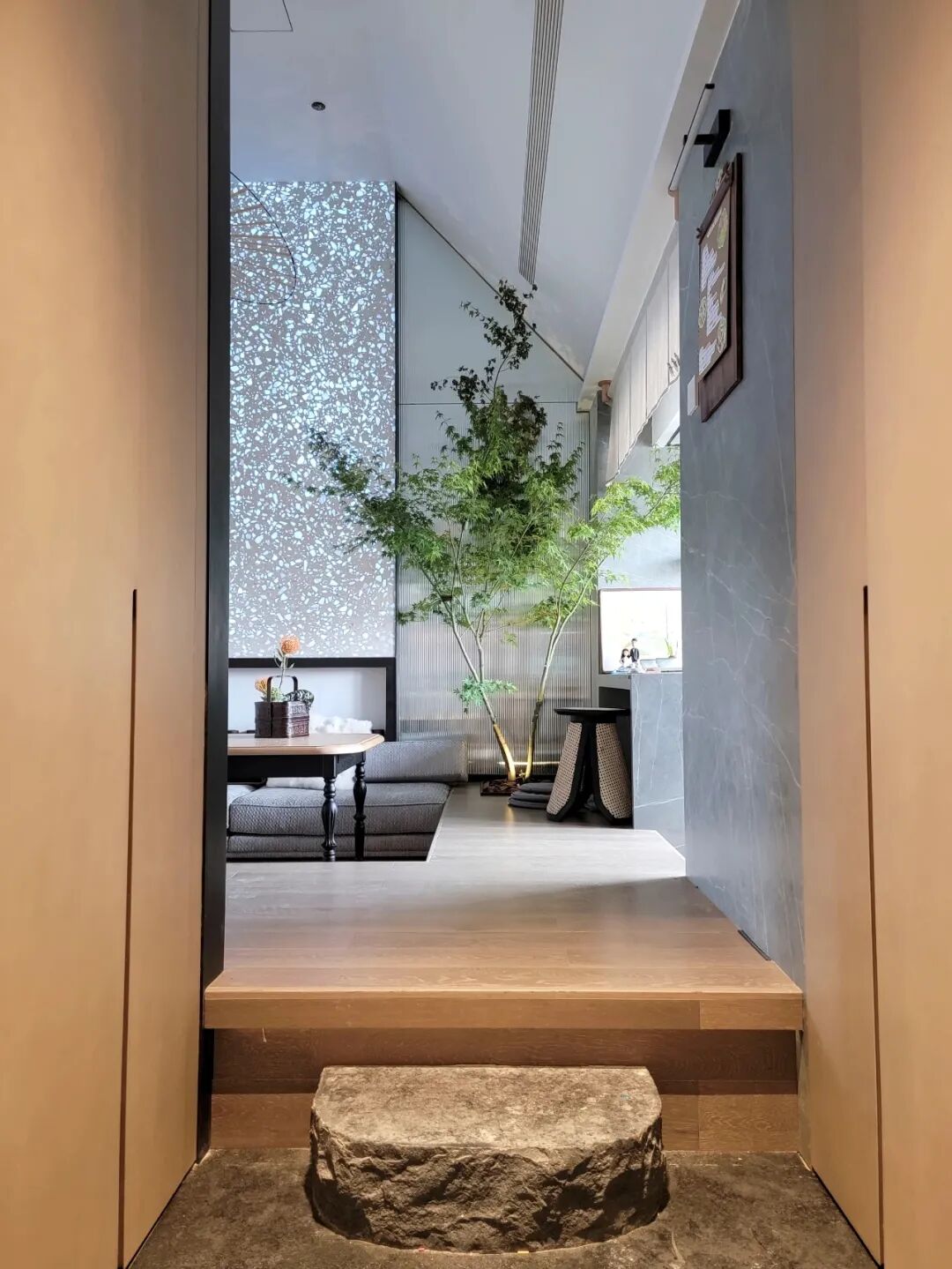 透光水磨石具有透光不透视的视觉效果,安装中可以搭配金属边框,切割成想要的造型,石材的质感带着透光性,作为隔断使用效果非常棒。