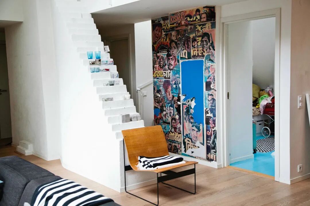 客厅一角摆放着Günter Renkel于1959年设计的Rego lounge chair。这把椅子看似轻薄,但其背后却有着精细的支撑结构,与这个家主题不谋而合。玄关处的海报墙则暗示着主人的个人爱好。© friendsoffriends