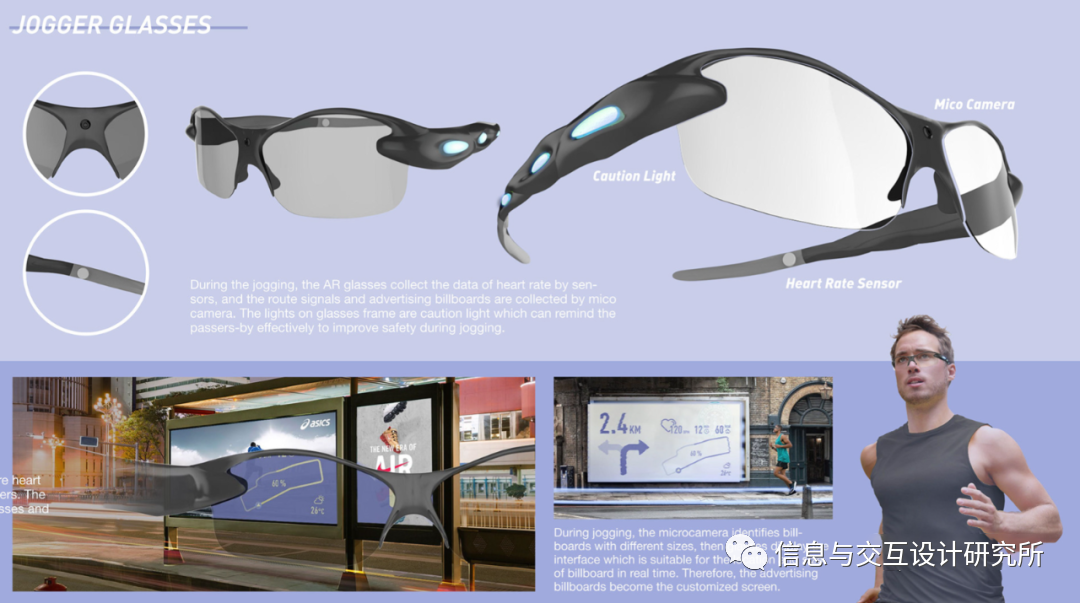 在未来,城市不再仅仅是真实可见的一面。在高度数字化之后,城市将产生更多的维度。城市慢跑者在不受外界干扰的情况下,戴上AR眼镜,就可以享受量身定制的慢跑系统。在城市慢跑者系统中,产生了一个独特的慢跑者社区,促进了城市的数字交流。