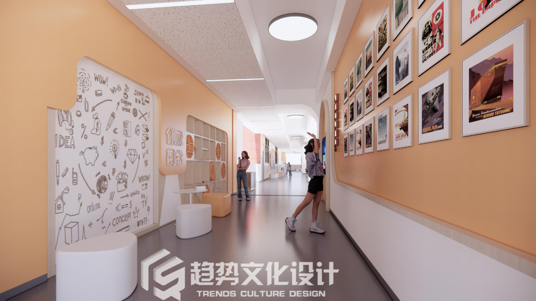 艺术走廊设计,融入涂鸦互动与学生作品展示