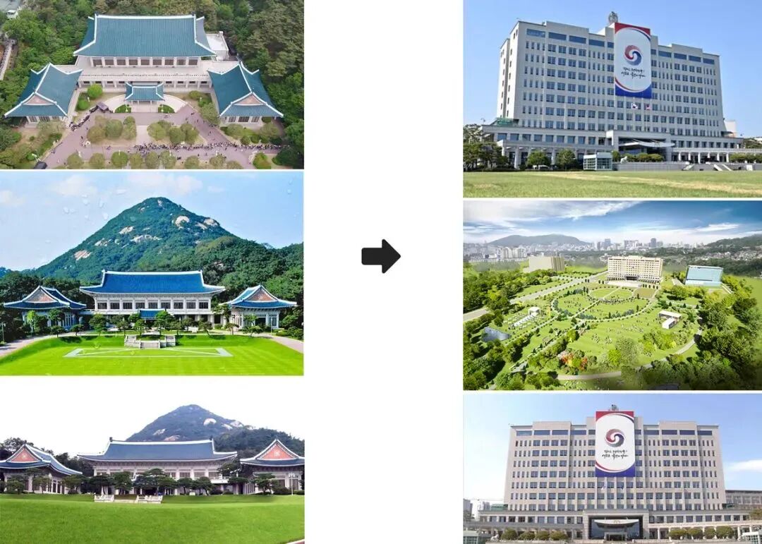 10月23日,尹锡悦在新办公室工作五个多月后,韩国总统府正式公布了全新设计的标志。和预想的差不多,总统府的新标志没有任何青瓦台的建筑元素,取而代之的是由两只凤凰环绕拥抱的总统办公室大楼,大楼的中心位置配有一朵象征韩国的木槿花。图形的下方标有「大韩民国总统府(대한민국 대통령실)」字样。