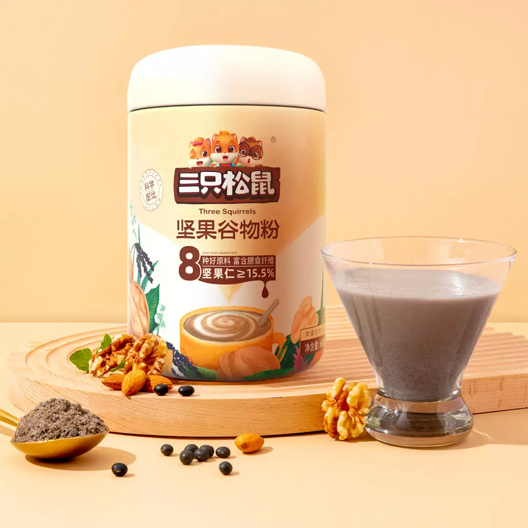 近日,三只松鼠新品坚果谷物粉上市。新品含有扁桃仁、核桃仁两种坚果,搭配桑葚粉、东北黑米、黑藜麦、黑芝麻等多种原料,仿石磨破壁粉碎保留营养价值,0添加,适用于老年人、学生、孕妇等多个群体。
