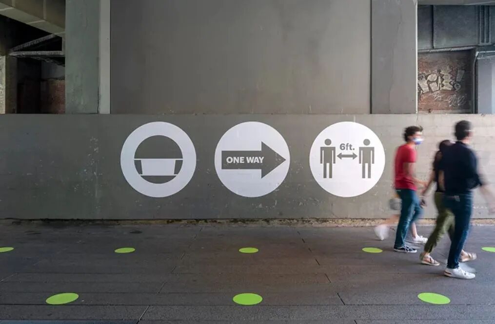 新图形是允许游客安全使用公园的策略的关键组成部分。设计师说过:“圆圈为图形标识引入了新元素,并有助于统一公园的体验。”“圆圈还为社交距离和戴口罩等法规提供了一系列自定义图标的基础,并出现在员工专用的T恤上。”