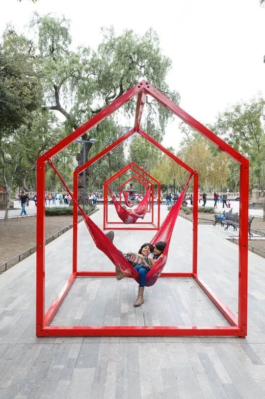 设计团队选择了所有观众都能识别的最基本的形状,这与温暖,舒适,安全和热情的想法有关。由于其外形,该安装还可以在多种情况下进行重新配置,并且可以承载多种活动。