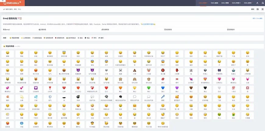直接说第二个「Emoji复制」,看起来它像一个专门进行 Emoji 素材复制的地方,但是它其实也是一个总览类的页面: