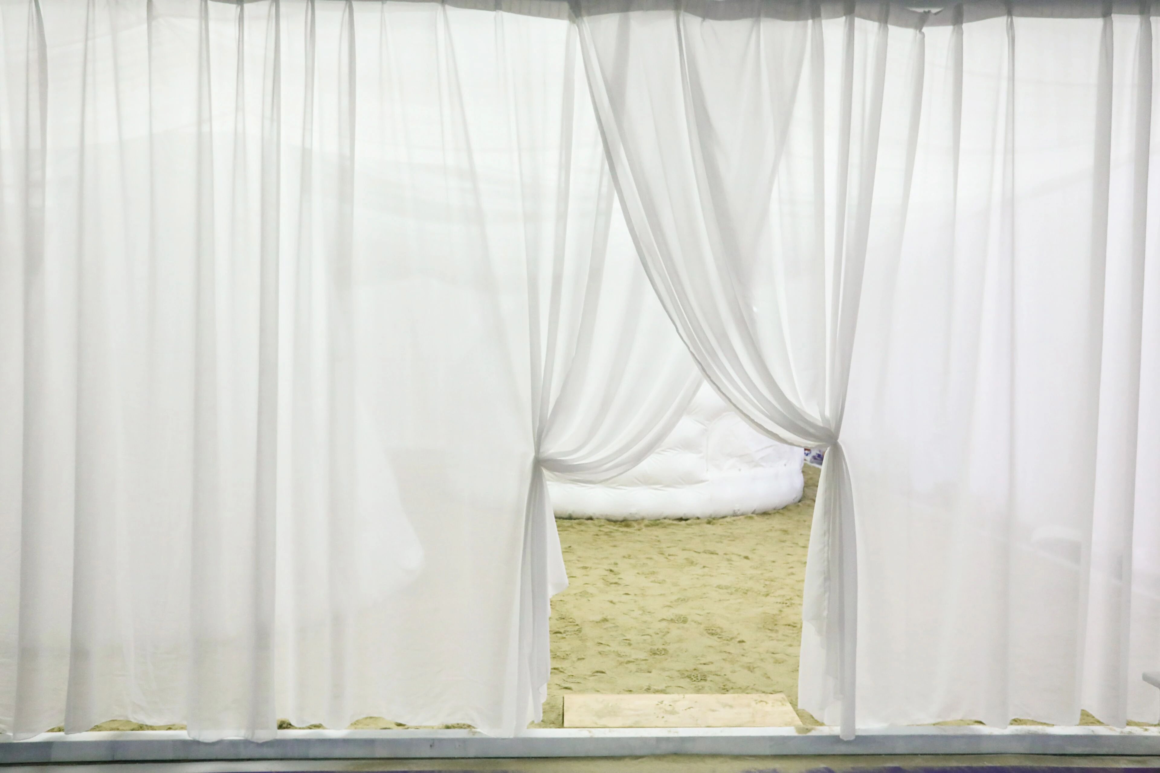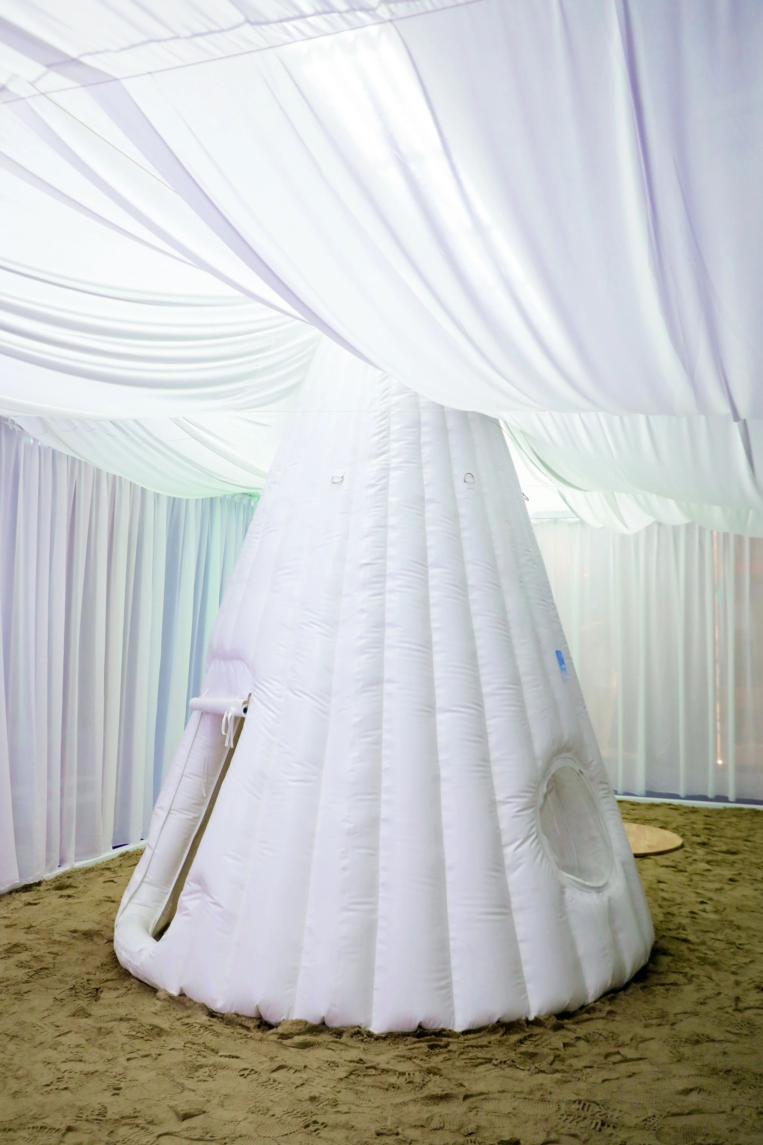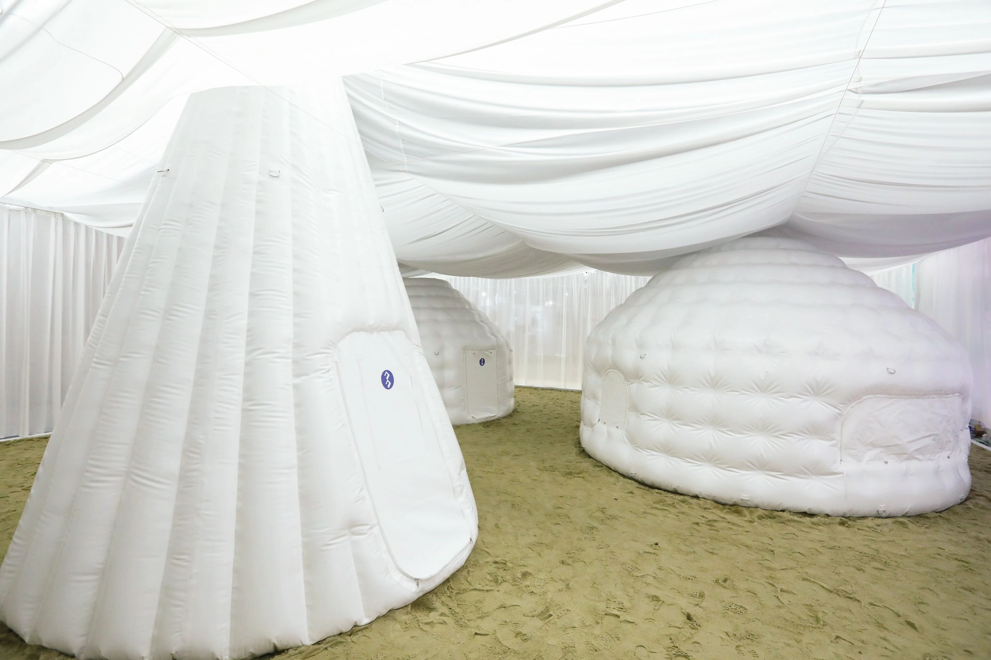 首先想表达一下非常喜欢你们的空间,在我看来是对主题是非常完整的回答。无论是从空间的推导、材质的应用、环保可持续的考证都可以打满分,里面最打动我的是设计最难的一点,让我感受到了设计的初心就是诚恳,我认为任何的设计做到最后能够非常诚恳地表达最初的价值是最难的,在你的作品中看到这一点非常打动我。这三个帐篷是你们自己开发的产品吗?