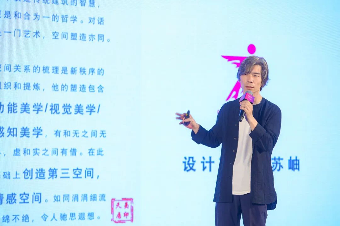 演讲语录:“苏州的美有山、水和园林,一山一水一园林。因此,在整个空间中我们希望通过所有的线和光在墙面上形成中国绘画中的墨分五色的感觉,把中国文人和传统思想的世界与现代建筑手法进行很好的结合,我们用到水和山脉让空间形成了虚与实的对比和对撞。”