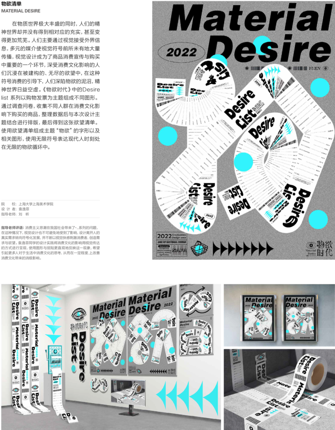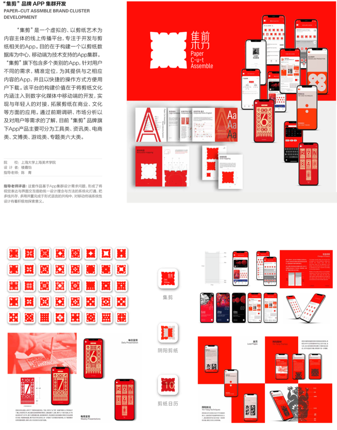 “聚变”聚焦设计学视角下的社会问题关注意识,以敏锐视觉触角介入时代进程下的社会现实,尤其是都市视域下的城市问题:社会心理、精神关怀、环境生态、消费主义、医患现实等,真实而又真切,以视觉疗愈与干预路径呈现关切视角,直面而不回避;“剧变”诚面历史文脉的延续与创新传承:海派新生、非遗再生、工艺重生,勇传其魂,拓其形脉,守节开拓。文化站位内化为专业守望,凸显今时视觉新酿的历史回应。“裂变”回应了当下视觉传达的传统功能价值拷问:“新”书籍、“新”插画、“新”海报、“新”文创……以视觉整体创新突破,思考回应问题解决之道,不迂回不守成,提供切实有效的跨界思考与实践路径应答。