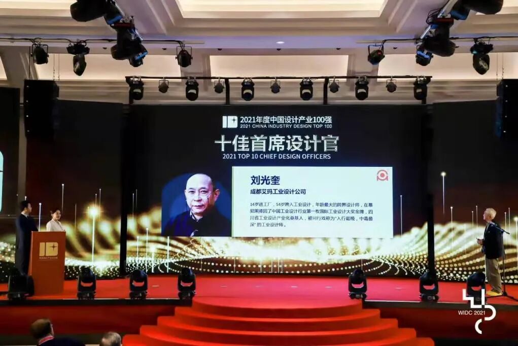 在2021世界工业设计大会上,刘光奎被中国工业设计协会授予全国“十佳首席设计官”荣誉。