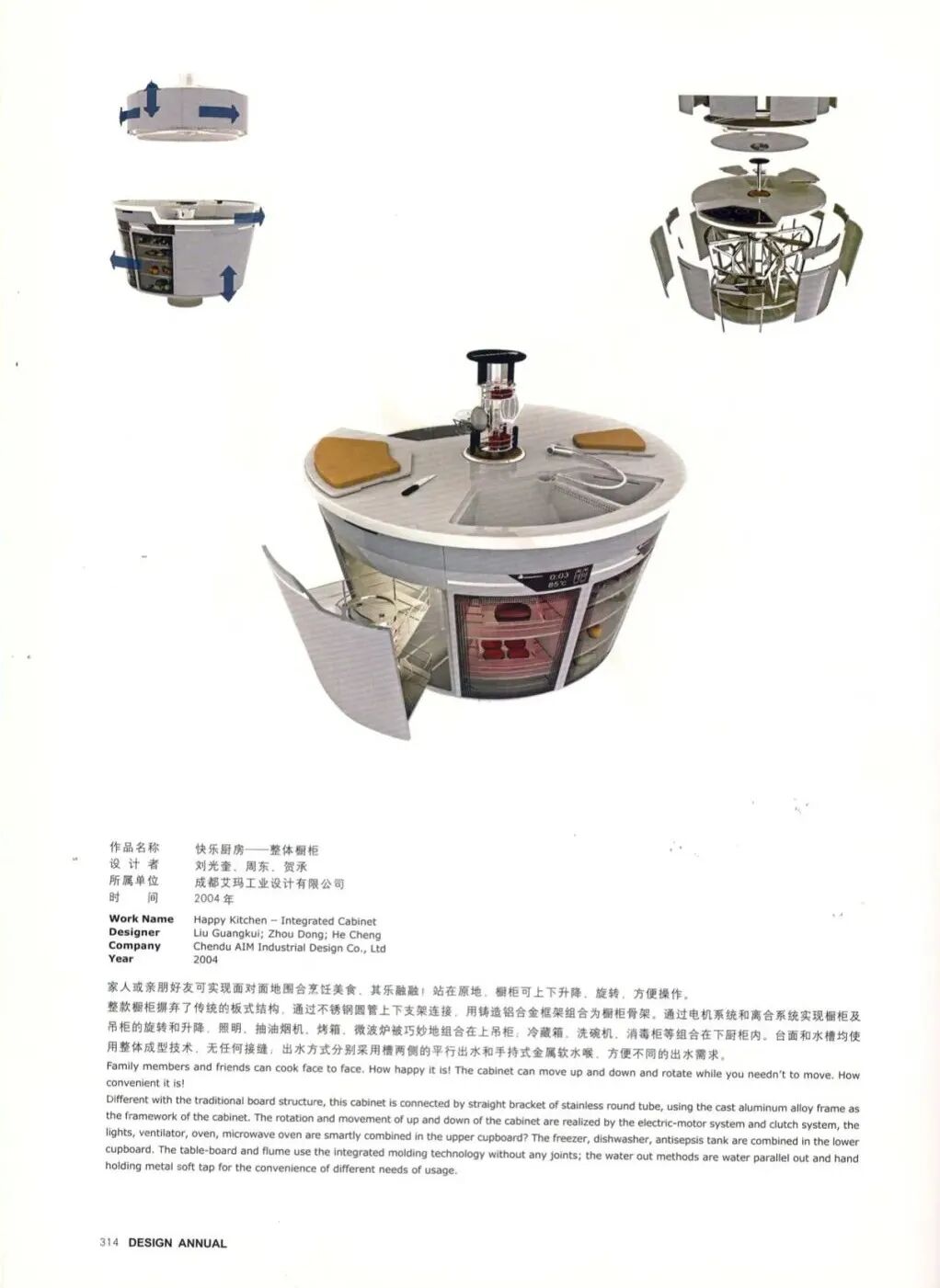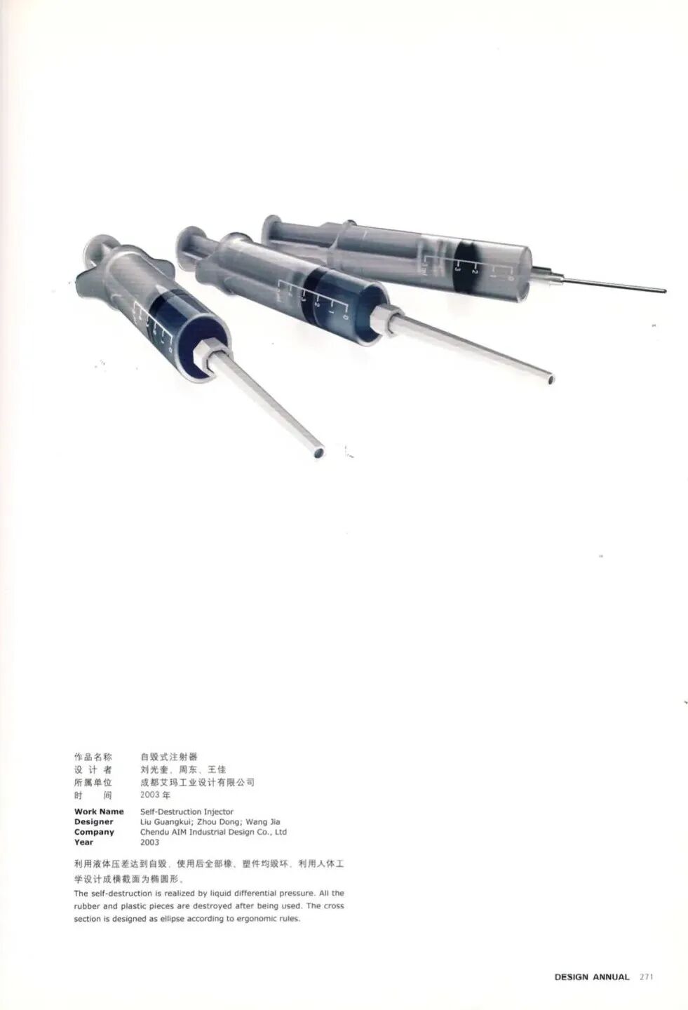 我们的设计作品凭借“存在即不合理,否则创意无法前进”的设计哲学,凭借较强创意设计能力和产品落地能力。中国第一本工业设计年鉴——《2006中国工业设计年鉴》,从18000多件作品中挑选并收录了175份作品,其中收录了我的3件创意设计作品:“快乐厨房”“三角形立式空调”和“自毁式注射器”。我的另外4件创意设计作品也被该年鉴选中,但因种种原因主动让给了一家知名国企。即便如此,我也是这本年鉴收录创意设计作品最多的中国工业设计师。该年鉴的主编事后告诉我,“录用作品淘汰率为91%,您的7份作品经两轮评审是唯一没有被淘汰且全部入选,这是‘唯一’,也是‘奇迹’。如果以7件作品占175件作品的4%的概率来算,实属创举。”