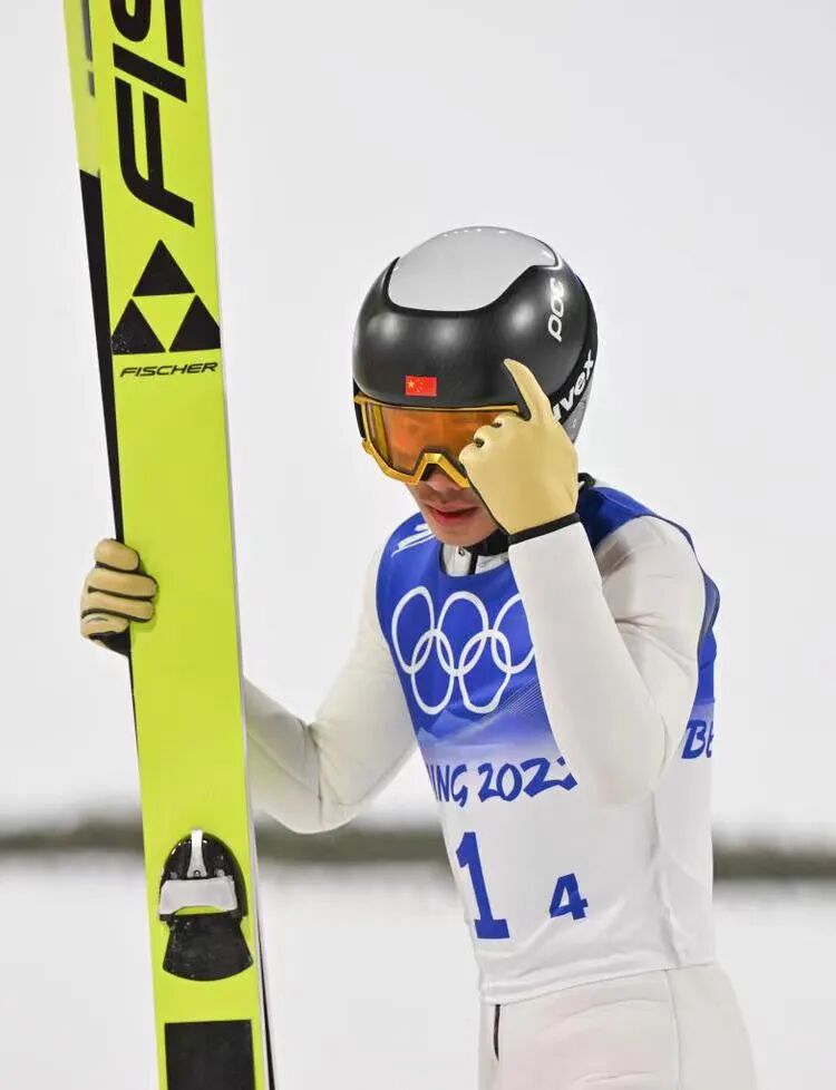 中国跳台滑雪队运动员赵嘉文现场比赛图