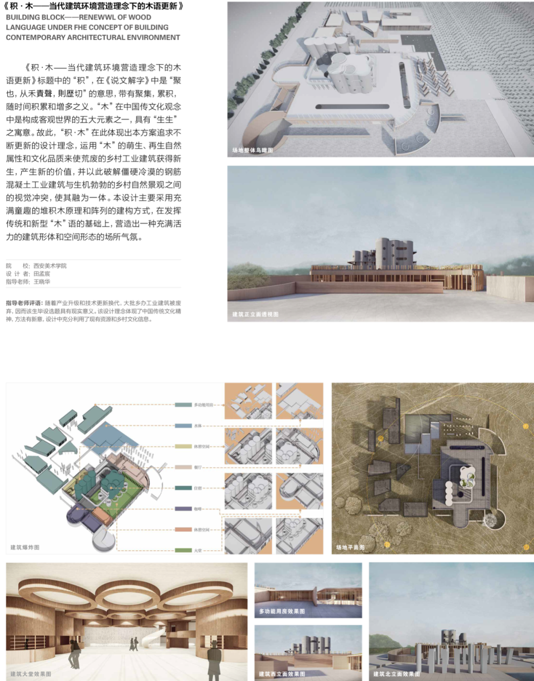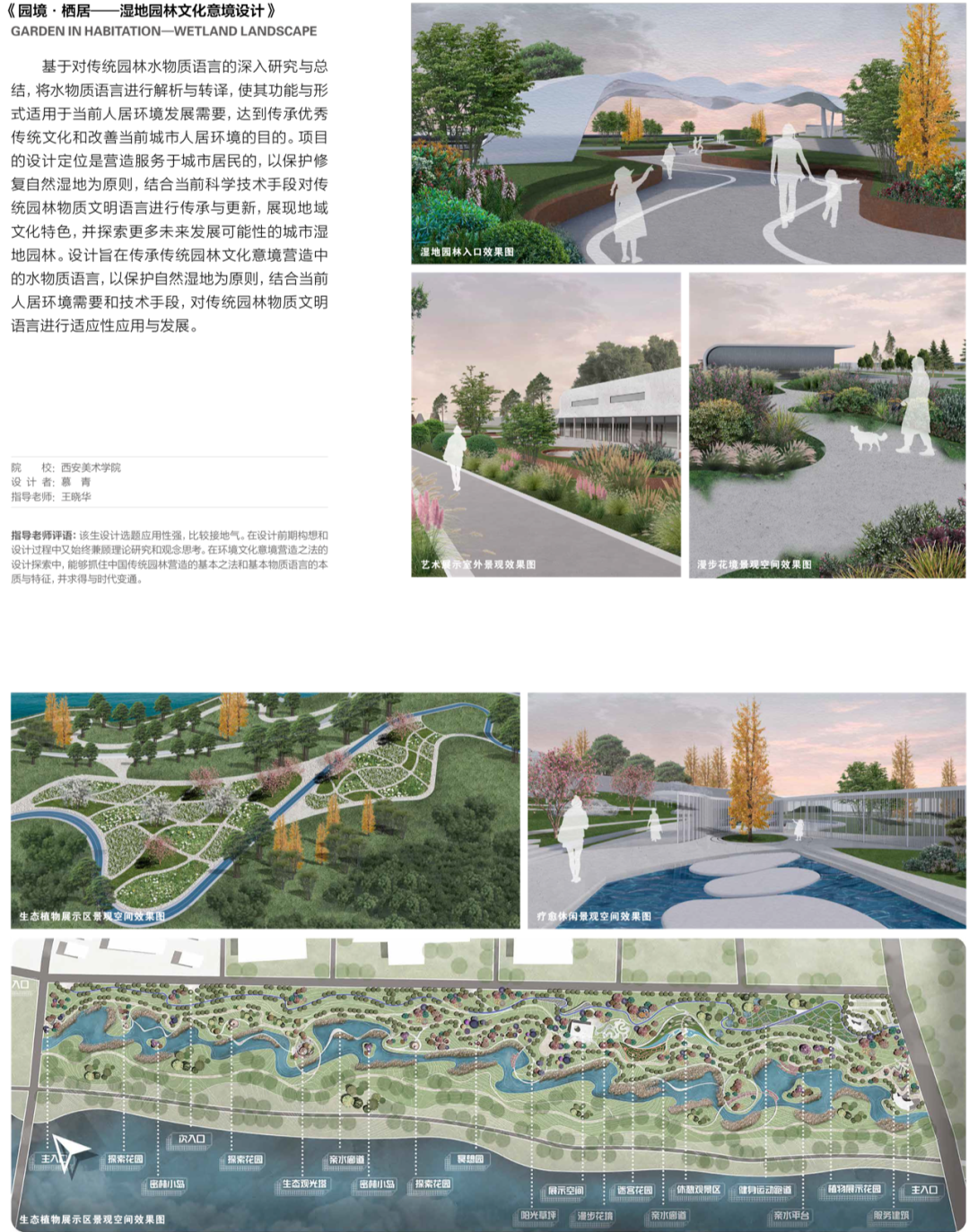 王晓华:我们每年辅导的毕设选题,一般在前期都要经过一段与毕业生沟通和筛选的艰难过程,主要针对当下热点问题、社会与艺术价值方面的考量,辅导他们挖掘自身的资源优势和兴趣关注点,寻找可能的突破口和特色,并以此调动他们的主观能动性。因此,自主选题,多元化和各具特色是我们一贯的选题指导原则。一般来讲,每年的毕设选题可分为主题性室内空间、主题性建筑环境、城中村改造、城市景观改造、湿地保护和利用、工业遗址开发和利用、新农村建设等多种类型。这种多元化选题的方法有利于启发学生学会发现现实生活中存在的实际问题,探索解决问题的新方法论,从而引导他们习惯多维思考,以此培养环艺设计为社会服务的价值观。