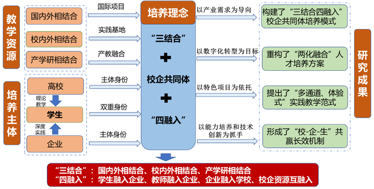 (1)实践教学改革方面,紧跟学科科技前沿,立足产业发展需求,以项目研发为牵引,提出了“多通道、体验式”实践教学范式。校企双方依据学生发展特点、知识结构体系、自身能力素质,“量身定制”实践项目;共同制定培养计划,全方位参与到学生培养全过程,实现知识迁移和灵活运用,全面提升了学生实践能力、创新能力、职业能力、团队协作精神和交流能力等。很大程度上解决了产教融合流于形式,实践教学资源单一,“走马观花”“两张皮”的现象,实现了深度实践教学。