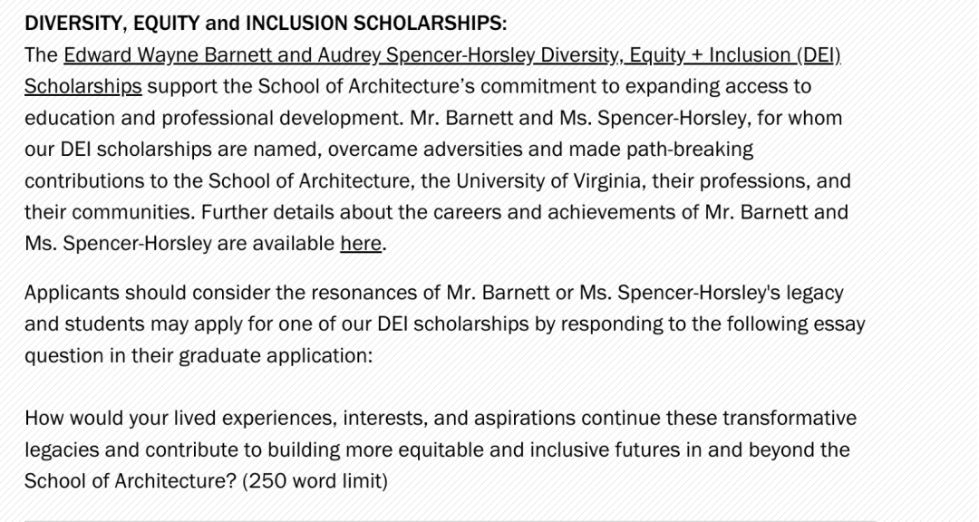 弗吉尼亚如果要申请奖学金也需要单独来写自己对于种族多样性、历史保护研究等的看法和感受