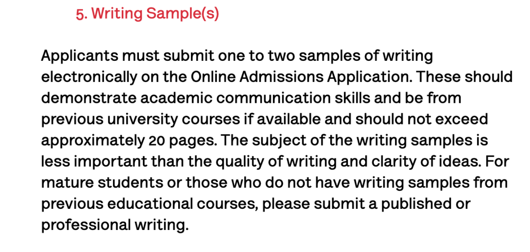 +++ 多大的writing samples ,来自学校官网