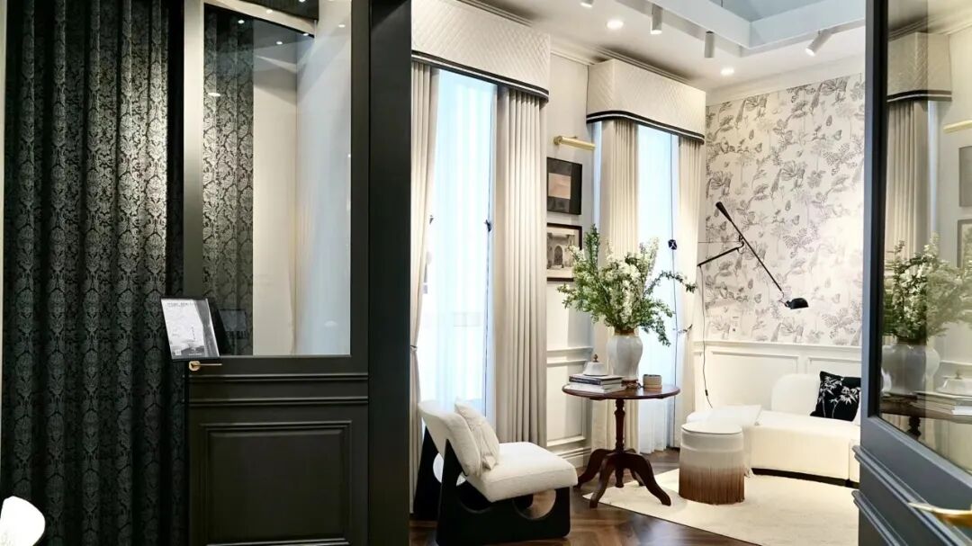 值得关注的是,本次伊伊布舍创新性的推出了新一代软装美学生活馆,以“60模块”,打造了1+N模式。伊伊布舍总经理张建林介绍说,在60平方米的基本模块中,以设计为核心完整呈现窗帘、墙布、艺术背景、定制家具等家居氛围。