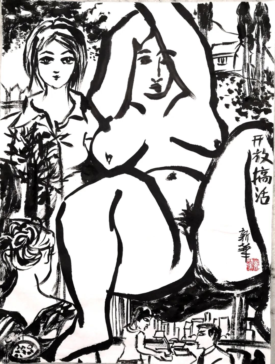 熟悉当代中国艺术的人不免有这样的感觉:艺术离生活、离大众太“遥远”,可是你在与刘新华的接触中体会到的是一个文人对生活的感触。一直没有接触纯艺术的学院式训练的刘新华走的是学院之外另一条艺术世界的道路,这正印证了那句话:条条大路通罗马。刘新华的“罗马”是用生活的脚印记录的,从80年代骑着单车在北京的各样胡同“乱窜”到现在每日见证着北京城的都市化进程,刘新华惊奇于身边发生的任何变化,在新华社的编辑工作也练就了他用文字记录故事、抒发情感的能力,而水墨艺术似乎已经顺理成章地成为他感悟传统精华、体验生活本质的载体。这些真是印证了李津的那句话“你这样的人是画不‘薄’的”。