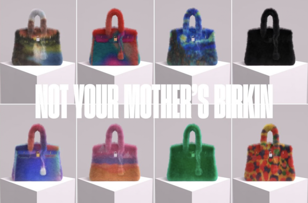 Rothschild 的涉案 NFT 作品于 2021 年 11 月发布,在该年 12 月初的迈阿密巴塞尔艺术展期间引来了许多目光,该系列旨在提高人们对可持续替代品的认知并促进该领域实现民主化。这些五彩缤纷的、毛茸茸的印花 NFT 手袋被 Rothschild 戏谑地称为“Not Your Mother’s Birkin(不是你妈妈的铂金包)”,不仅在名字和宣传上使用了爱马仕的产品名,还在设计上复刻了爱马仕产品的标志性款式。
