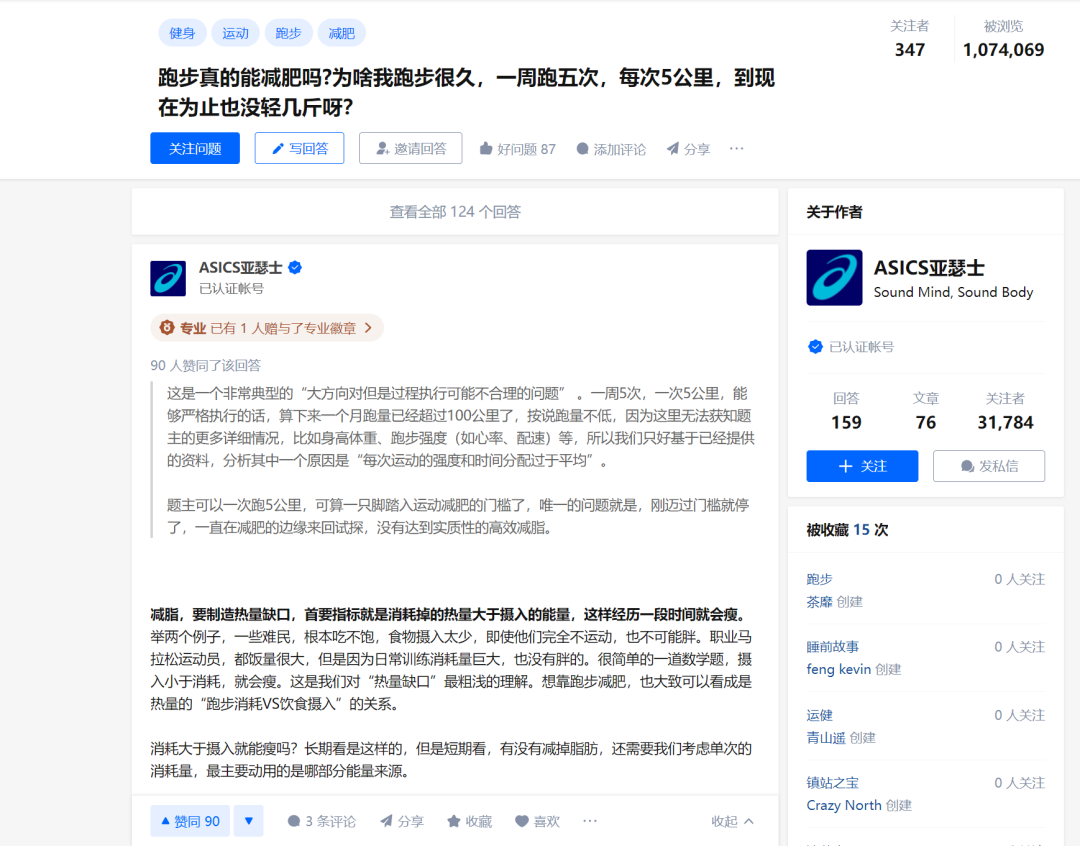 它节选自ASICS亚瑟士对于一个知乎提问作出的回答——“跑步真的能减肥吗?为啥我跑步很久,一周跑五次,每次5公里,到现在为止也没轻几斤呀?”