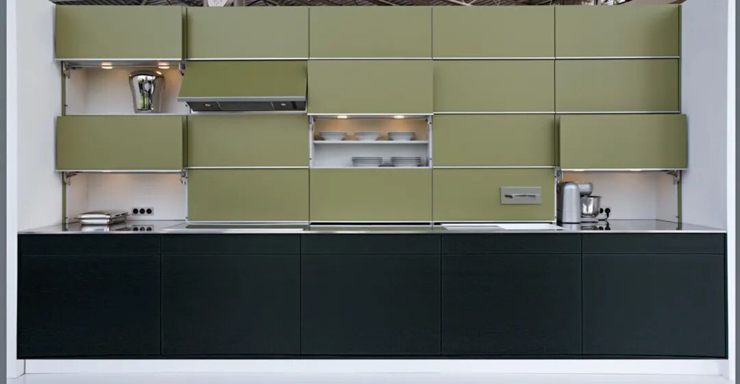 2006年,劳斯开发全新的墙面收纳概念系统CONCEPT 40,墙面上翻平移门的使用,嵌入式翻折的烟机电器,水位设计,让厨房的墙面模块化得道了新的解决方案。而关闭所有门板,实现更为简洁的厨房空间,而打开则是超强的功能性收纳,与流水般高效率烹饪环境。